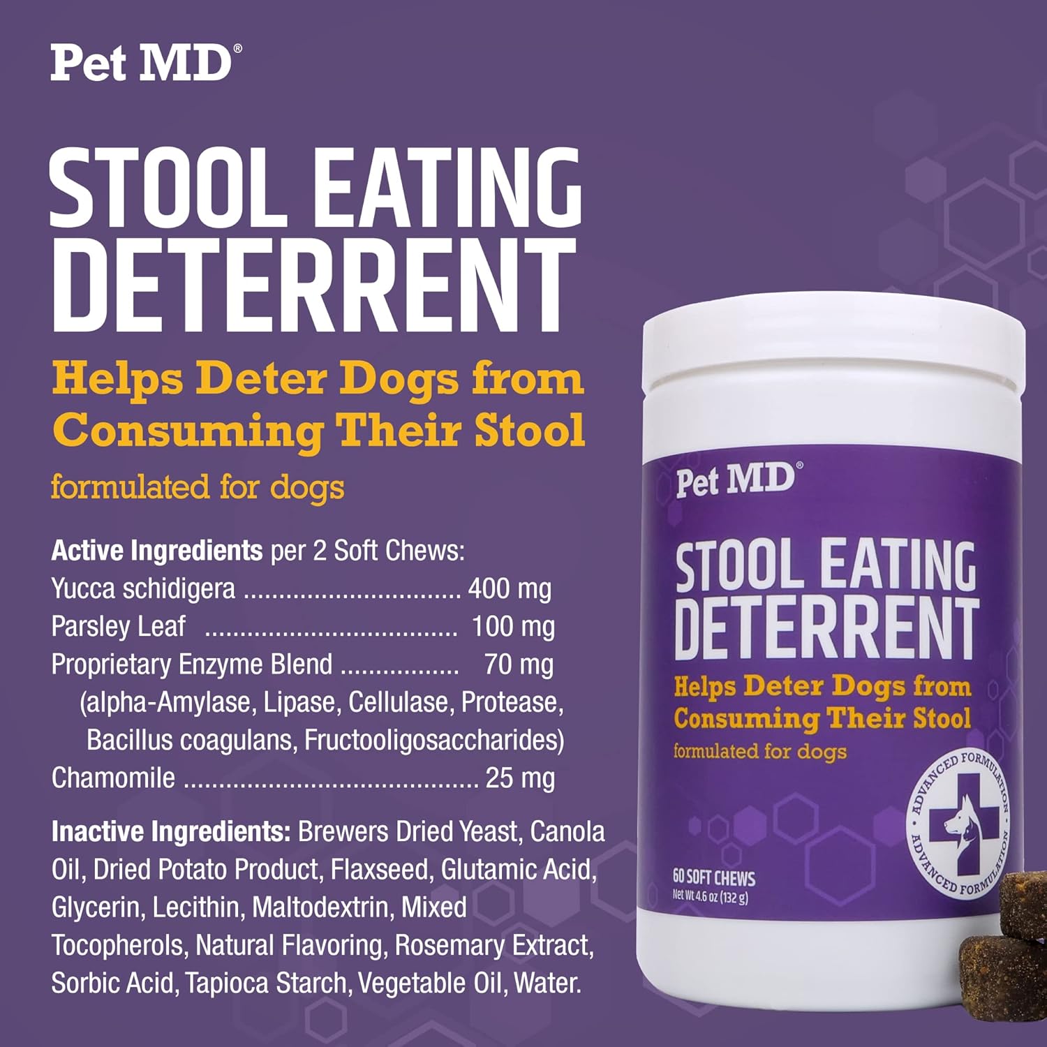 Stop Eating Poop for Dogs: Taste-aversion chews make droppings smell unappetizing to help prevent coprophagia of their stool or that of other dogs if they are also given Stool Eating Deterrent