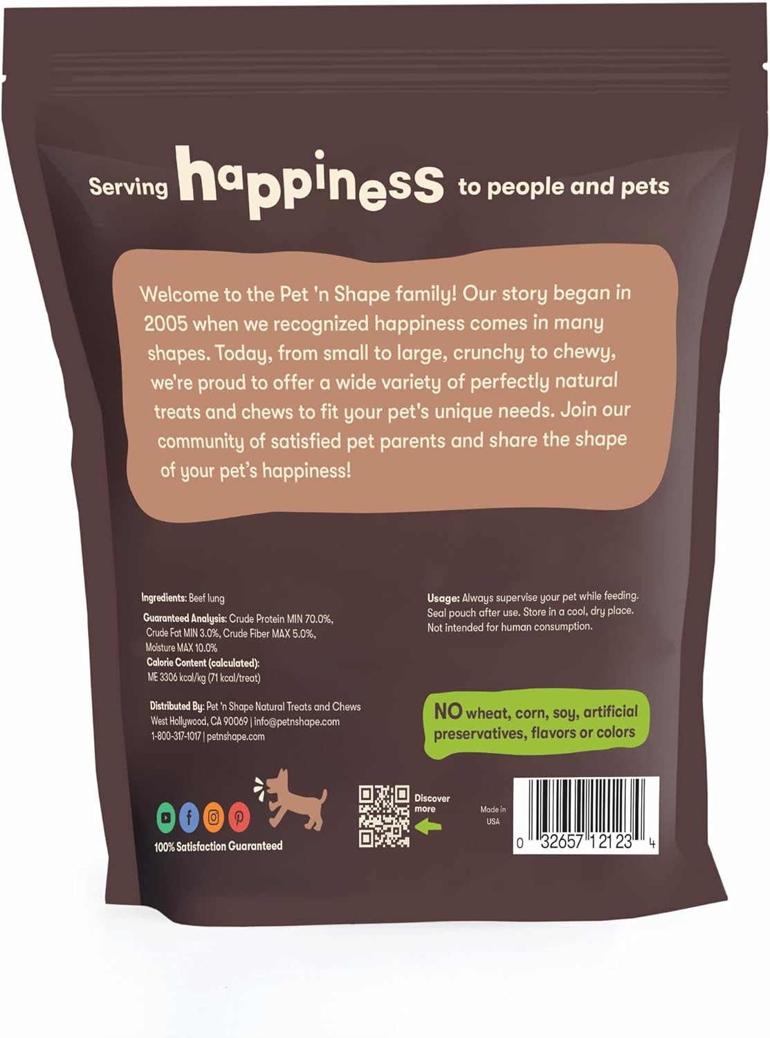 Pet 'N Shape Beef Lung Slices Are 100% Natural And Proudly Made And Sourced In The Usa. This Lightweight, Crunchy, Mouth-Watering Treat Is Ideal For Playful Puppies, Adults And Seniors Of All Sizes And May Be Broken Into Smaller Pieces To Use As A Training Tool. Pet 'N Shape Beef Lung Slices Contain No Artificial Additives, Colors, Or Preservatives And Are Free Of Wheat, Corn, And Soy. Resealable Packaging Locks In Freshness And Is Ideal For Easy Storage