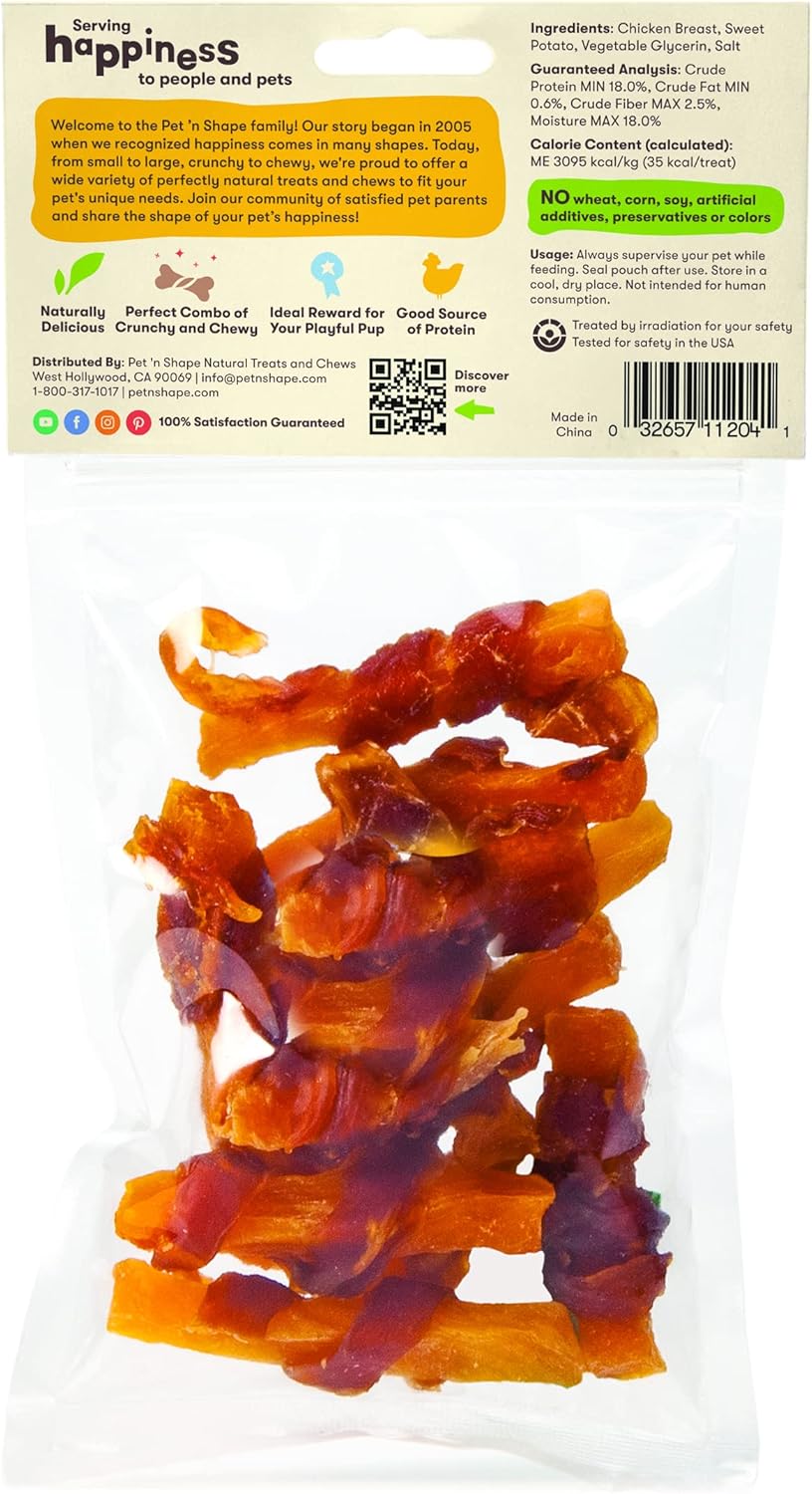 100% Natural – Pet ‘N Shape Chik ‘N Sweet Potato Snacks Contain No Artificial Colors, Additives, Or Preservatives And Are Free Of Any Wheat, Corn, And Soy. Chicken Breast Is A Great Source Of Lean Protein And You Can Rest Assured That Your Pooch Is Getting A Healthy Snack