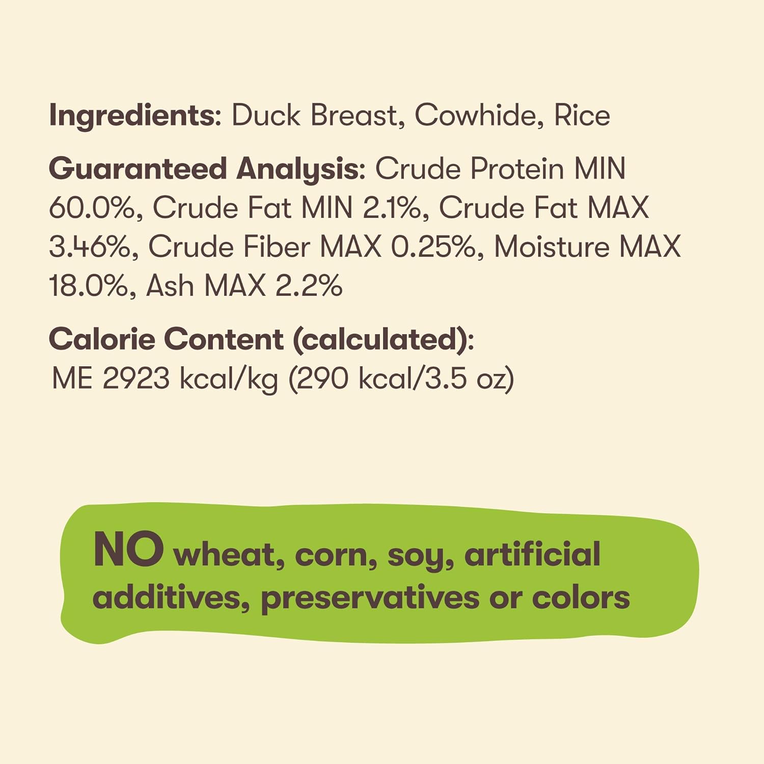 Ingredients - Tantalizing Treat Made From Naturally Delicious Duck Breast Fillets And Brown Rice Formed Into Crunchy, Bite-Sized Balls On A Chewy Rawhide Stick