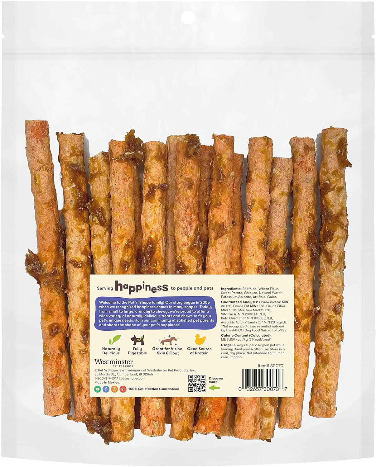 Pet 'N Shape Sweet Potato Chicken Sticks, 15 Count - Dog Chews - No Artificial Flavors, Colors, Or Preservatives - Protein Rich Alternative To Rawhide