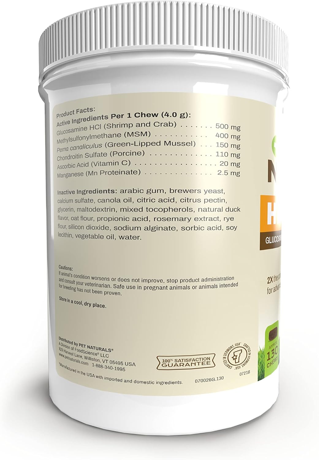 Pet Naturals Hip And Joint Pro With Glucosamine, Chondroitin And Msm, Duck Flavor, 130 Chews - Vet Recommended Maximum Strength Hip And Joint Supplement For Dogs