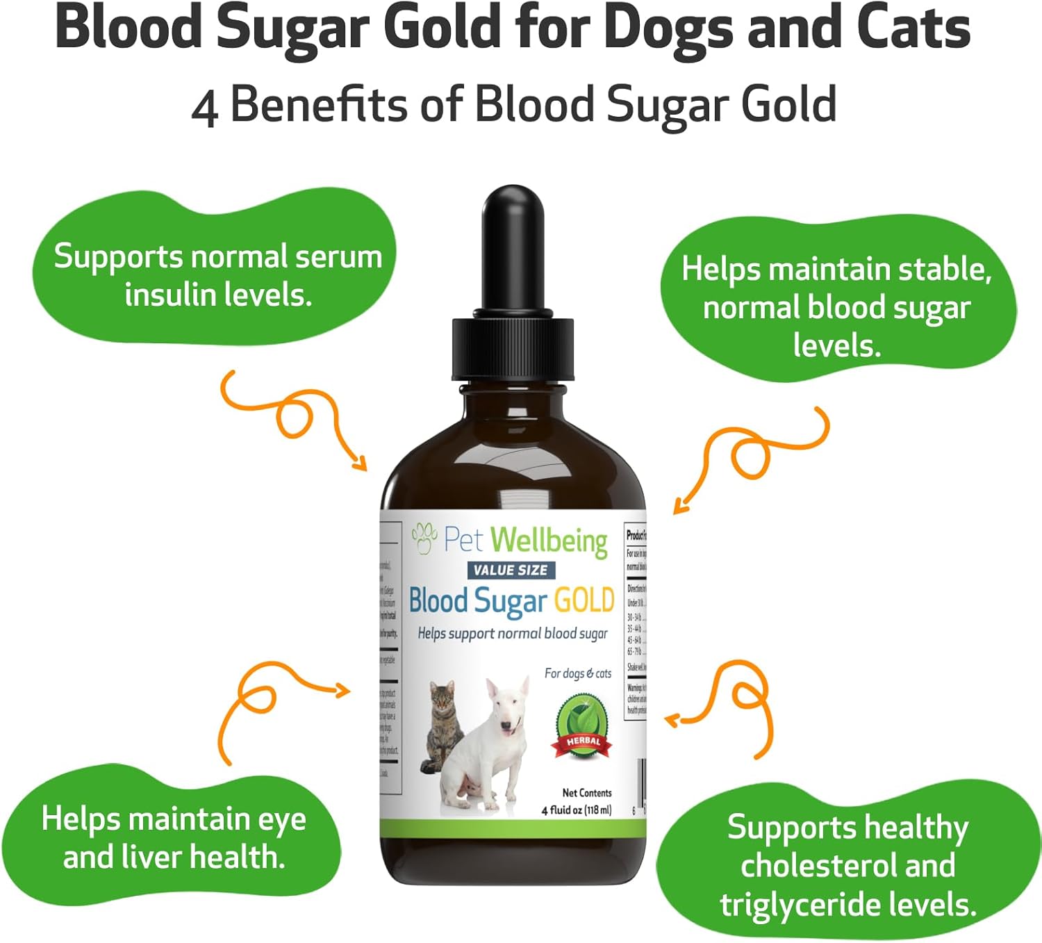 Pet Wellbeing - Blood Sugar Gold Value Size For Dogs & Cats - Natural Support For Healthy Blood Sugar Levels In Your Pet With Diabetes - 4 Oz (118Ml)