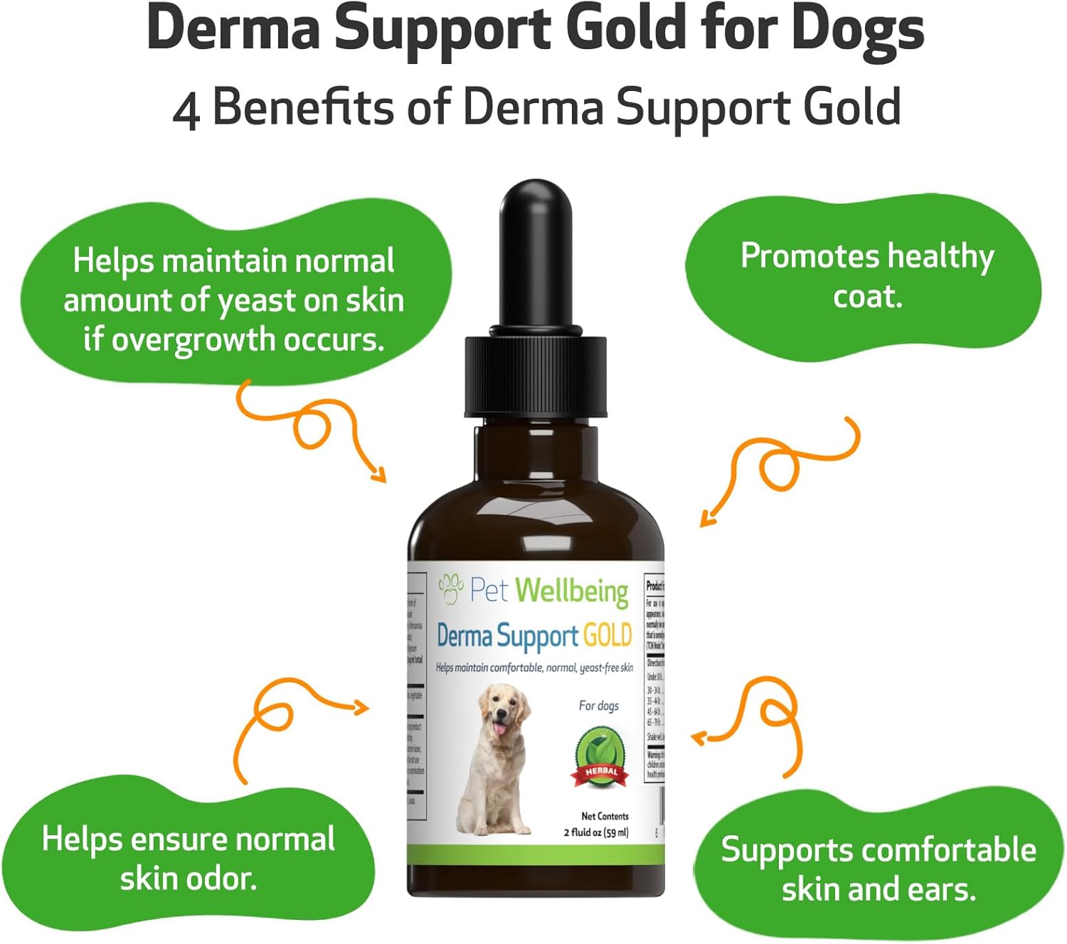 Pet Wellbeing Derma Support Gold For Dogs - Vet-Formulated - Normal Skin Yeast Balance, Skin Itching & Odor - Natural Herbal Supplement 2 Oz (59 Ml)