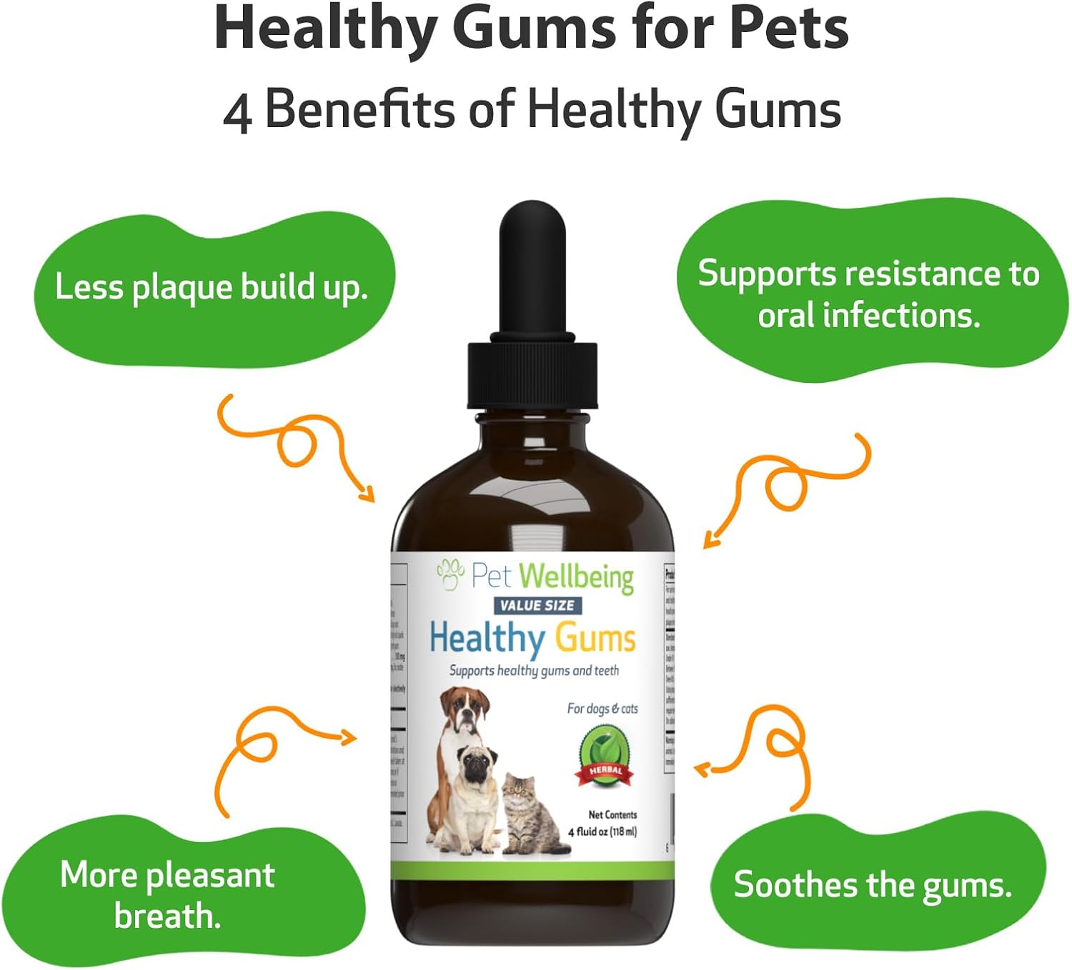 Pet Wellbeing Healthy Gums For Dogs & Cats - Veterinarian Formulated - Healthy Gums & Teeth, Oral Care For Gingivitis, Fresh Breath, Dental Health - Natural Topical For Cats & Dogs 4 Oz (118 Ml)
