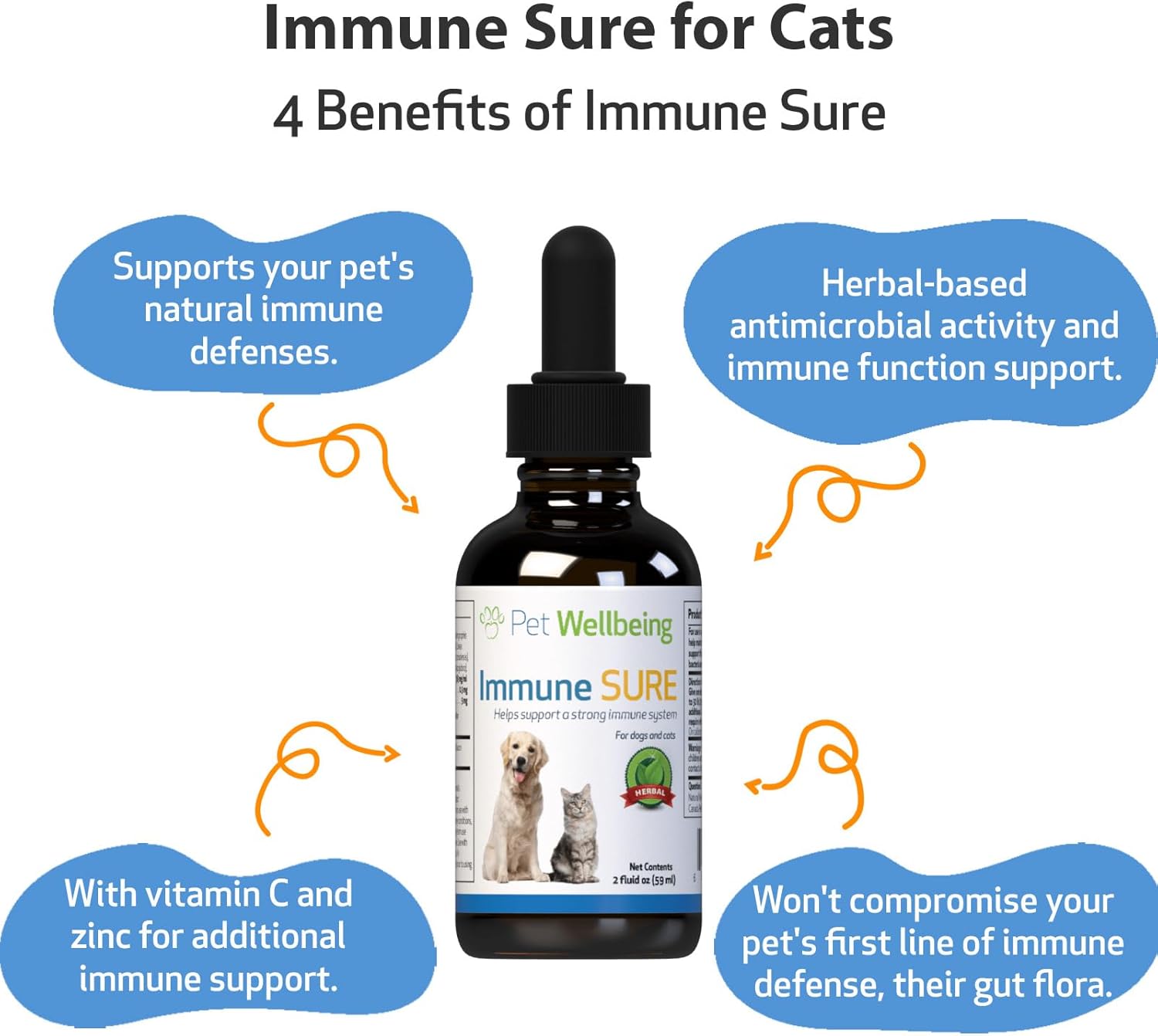Pet Wellbeing Immune Sure For Cats - Vet-Formulated - Immune System Support & Protection - Natural Herbal Supplement 2 Oz (59 Ml)