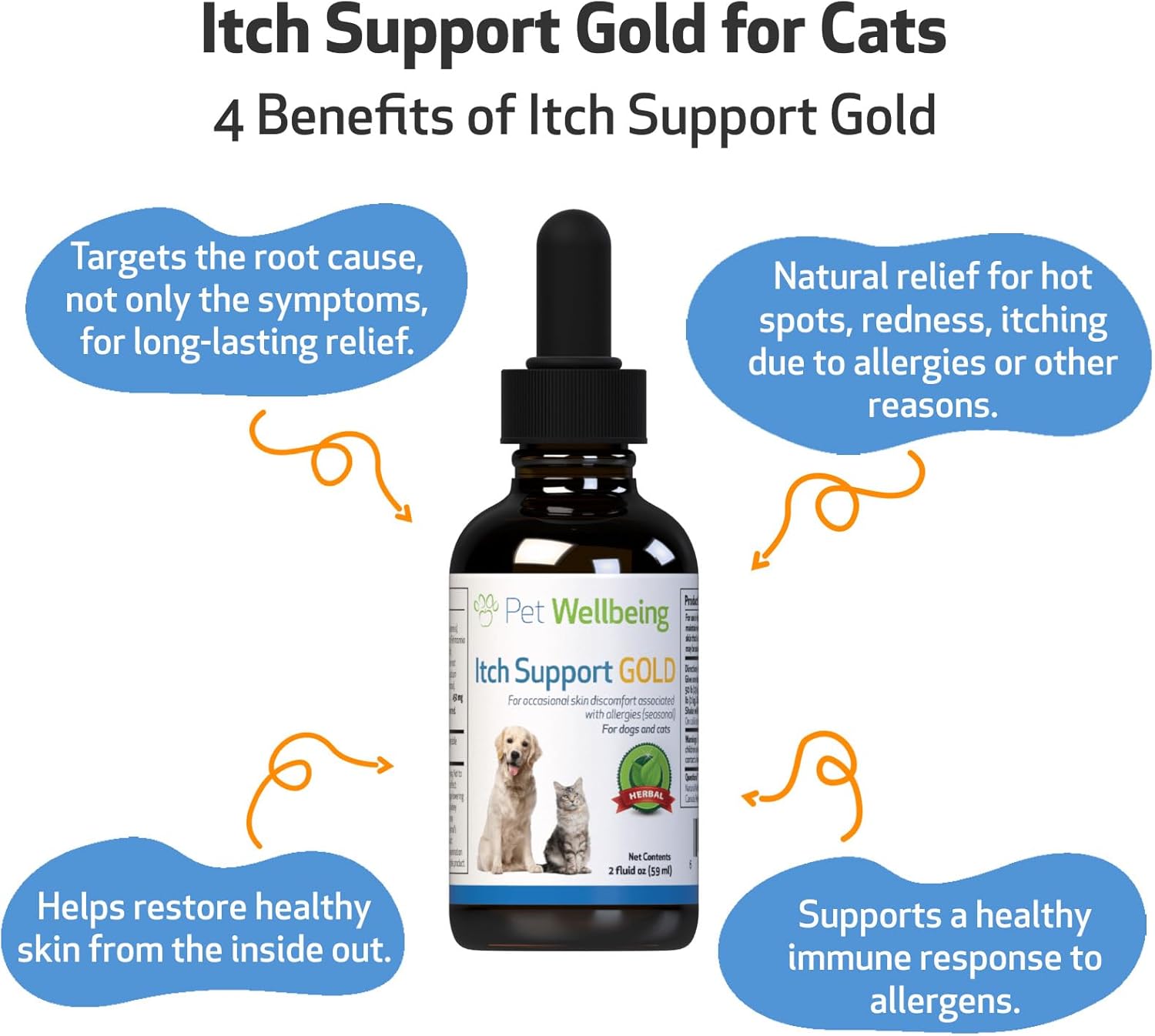 Pet Wellbeing Itch Support Gold For Cats - Vet-Formulated - Itchy Skin & Paws, Hot Spots, Skin Allergies - Natural Herbal Supplement 2 Oz (59 Ml)