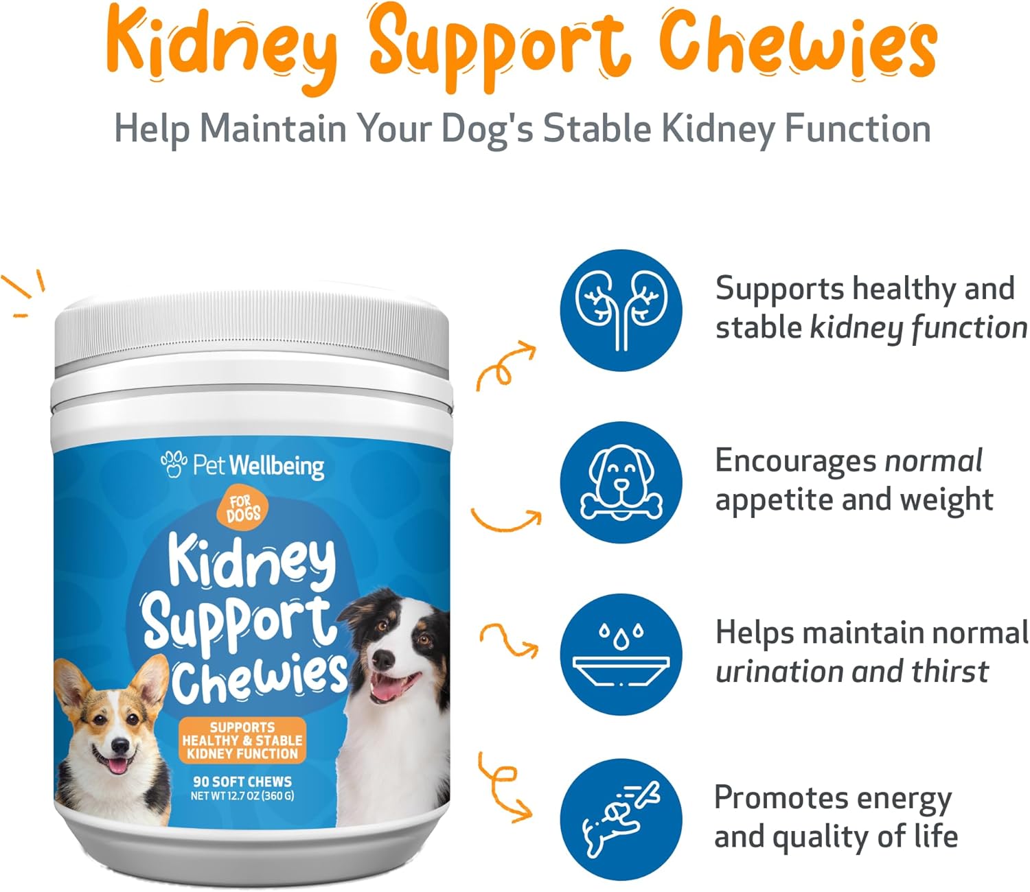 Pet Wellbeing Kidney Support Chewies For Dogs - Vet-Formulated - Supports Healthy Kidney (Renal) Function In Dogs - 90 Soft Chews