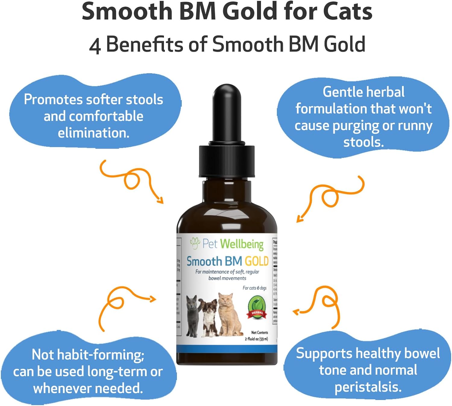 Pet Wellbeing Smooth Bm Gold For Cats - Gentle Constipation Relief For Felines - Natural Herbal Supplement 2 Oz (59 Ml)