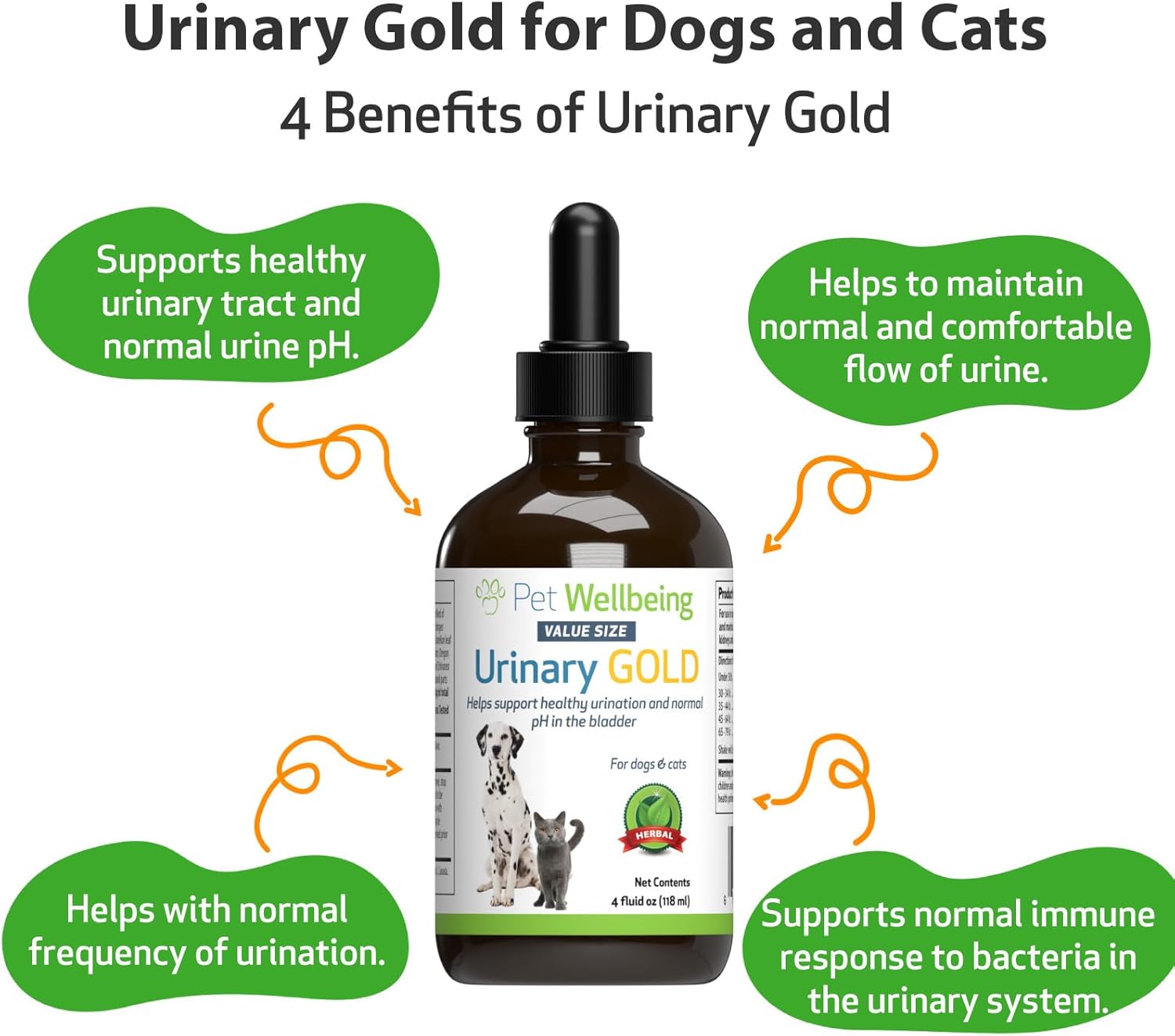 Pet Wellbeing Urinary Gold For Dogs & Cats - Vet-Formulated - Urinary Tract Health, Supports Normal Urinary Ph - Natural Herbal Supplement 4 Oz (118 Ml)