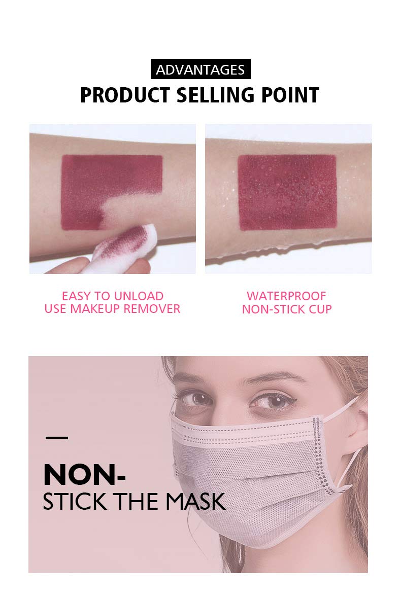 Features: Waterproof, Not stick cup,do not fade,matte dry only lightly purse one's lips,otherwise it will stick,painted lip gloss finish is dry because is fog surface velvet effect