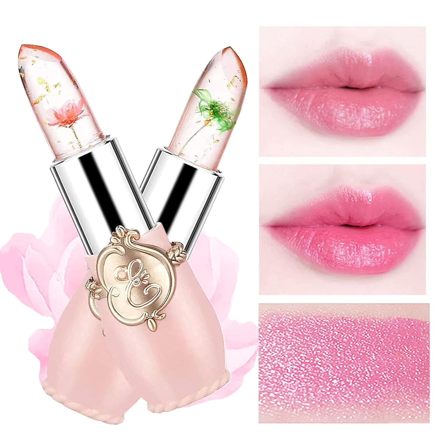 Petansy 6 Pack Crystal Jelly Flower Lipstick Set, Nutritious Temperature Change Lip Balm Long Lasting Moisturizer Lip Gloss Magic Color Change Lip Stick Set
