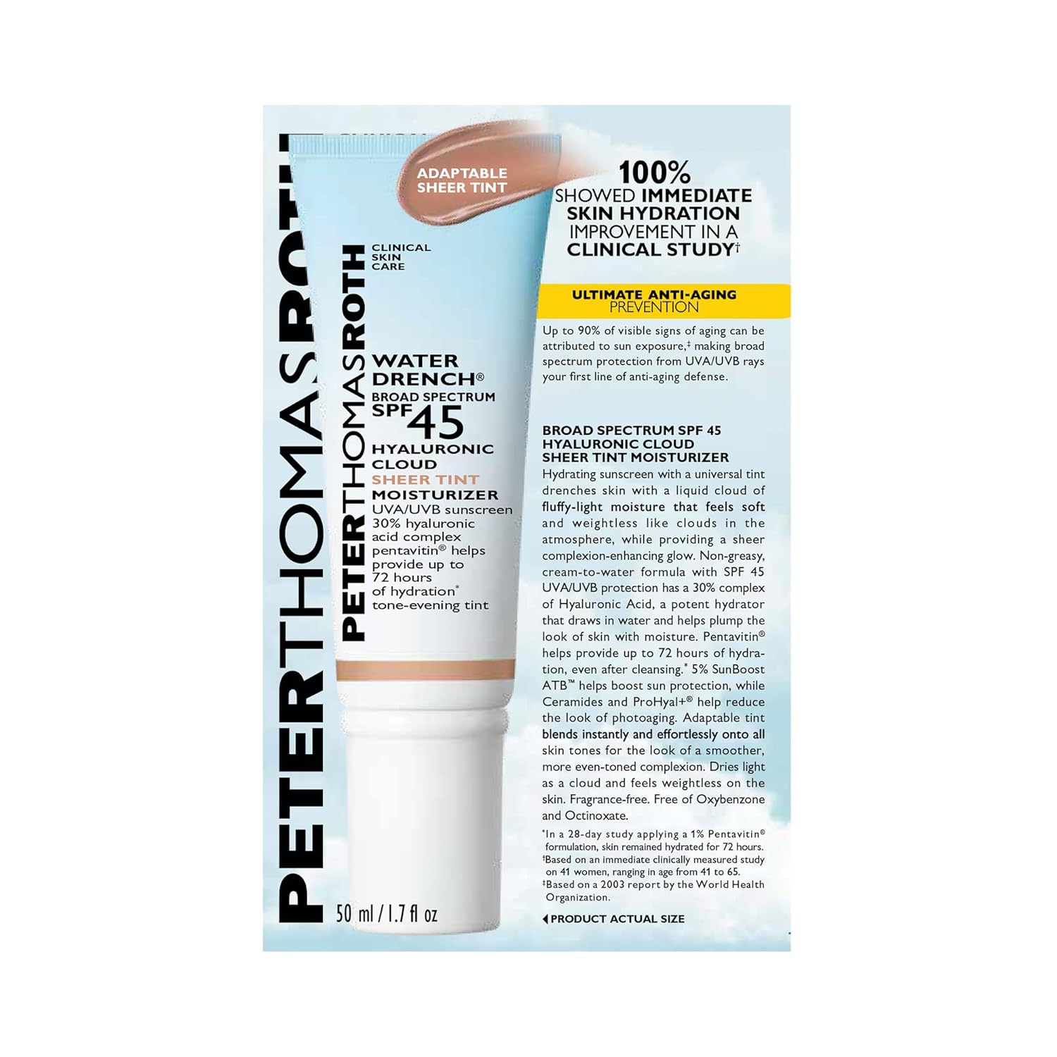 Peter Thomas Roth | Water Drench Hyaluronic Cloud Sheer Tint Moisturizer Broad Spectrum Spf 45, Hydrating Tinted Spf Moisturizer, Adaptable Sheer Tint, For All Skin Tones And Types