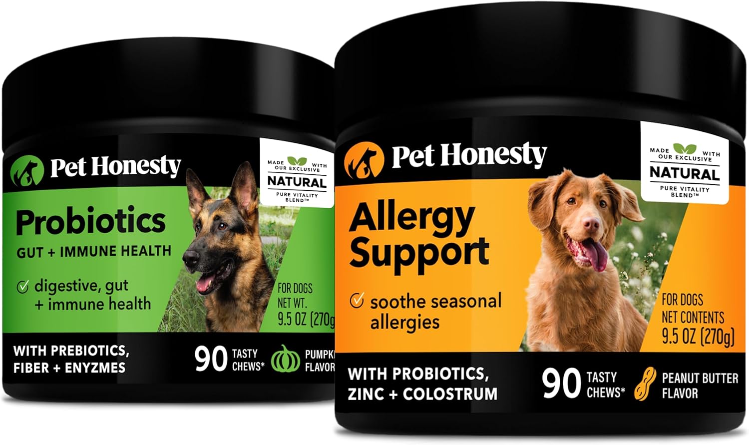 Pethonesty Digestive Probiotics For Dogs + Allergy Support Soft Chew Supplement Bundle - Probiotics, Digestive Enzymes, Salmon Oil And Omega 3 Fish Oil, Itch Relief For Dogs, Coat And Skin Health