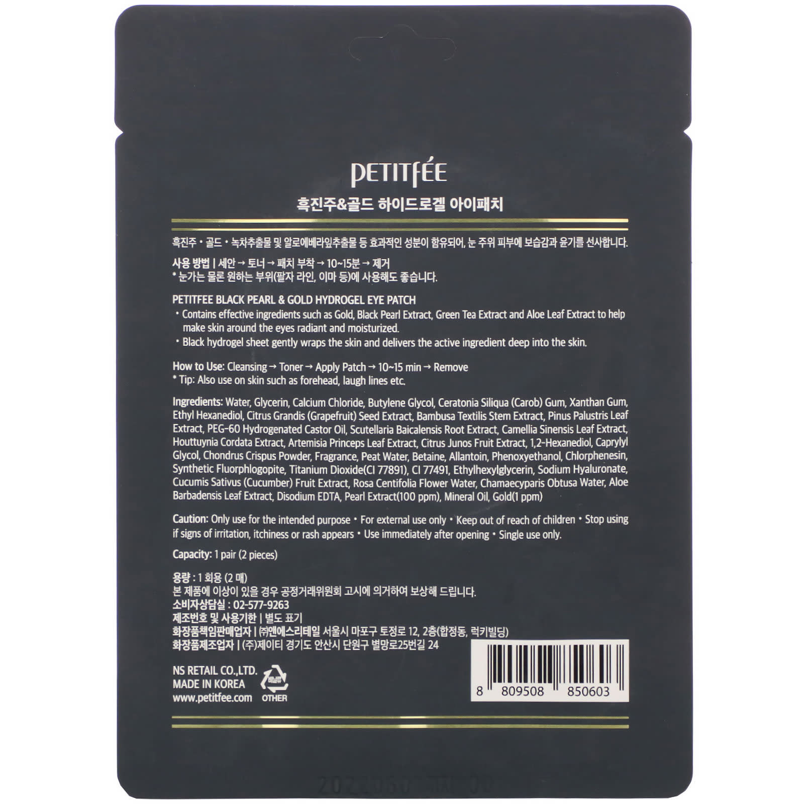 Petitfee, Black Pearl & Gold, Hydrogel Eye Patch
