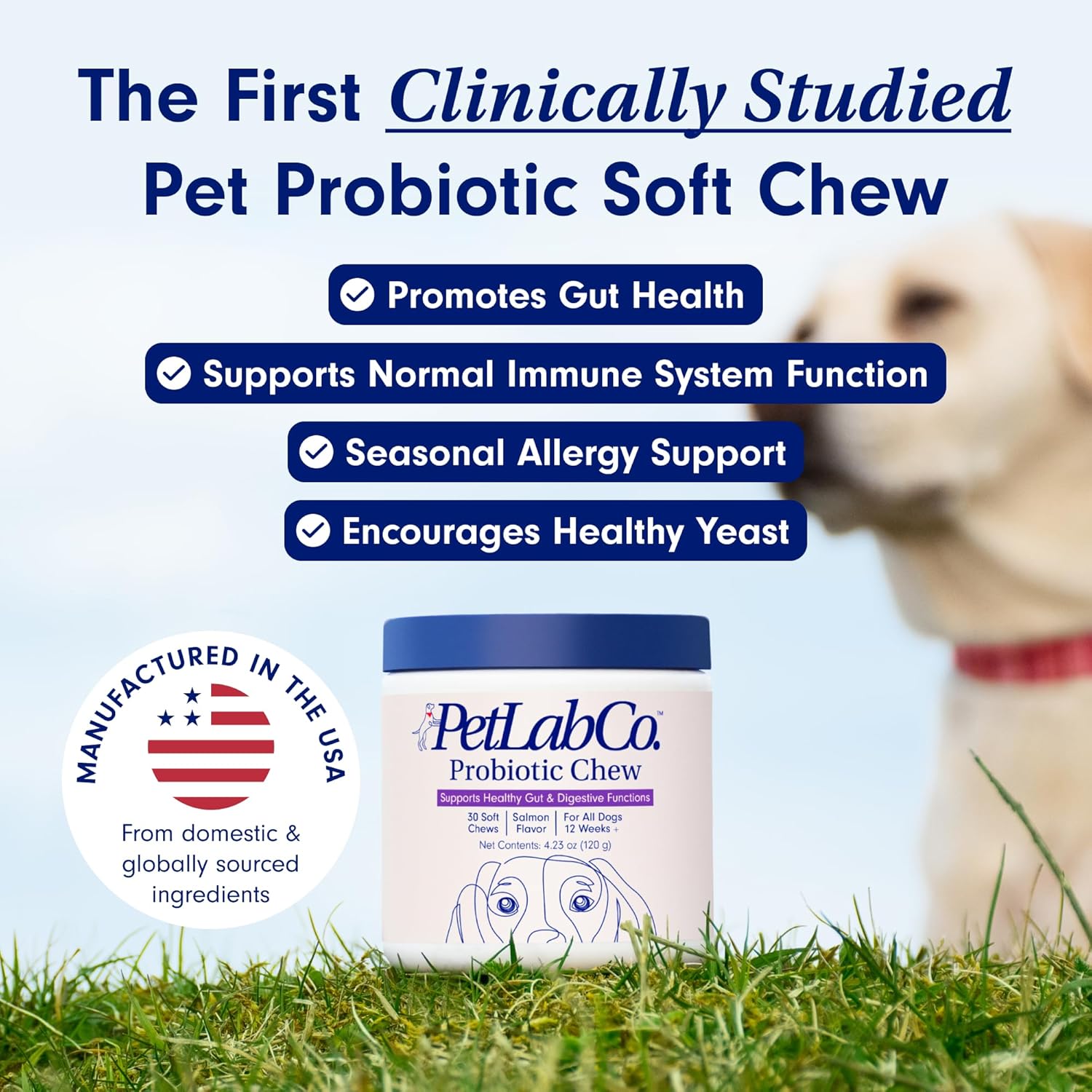Petlab Co. Probiotics For Dogs, Support Gut Health, Diarrhea, Digestive Health & Seasonal Allergies - Salmon Flavor - 30 Soft Chews