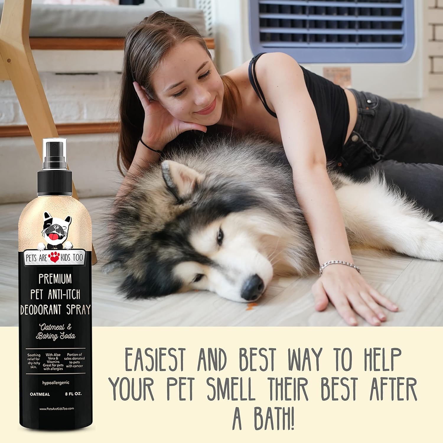 Hypoallergenic Dog Grooming Spray - Our dog spray is made with oatmeal, aloe, and baking soda to provide safe, lickable, and fast acting itch relief for dogs and cats! Safe to ingest, odor eliminating, and most importantly allergy itch relieving!10Paraben Free Oatmeal Relief - This all natural dog deodorizing spray is cruelty, sulfate, and paraben free; so you can trust our product is safe for your pets. Our oatmeal scented formula leaves your pets itching soothed and coat smelling great!10Simple Pet Care Application - Hassle free application, just point and spray! This is not a hot spot medication, but perfect for itchy paws, a case of the butt scooch, or any bug bites. Bring the relief to your fur baby between baths, they deserve it10Gentle Soothing Itch Fix- For pets of all ages, our dog deodorant spray for smelly dogs and dog itching skin relief is gentle and effective! Contains vitamins a d and e to nourish and PH balanced to be safe for your dogs, puppies, cats, and kittens10Uncompromising Quality - Pets Are Kids Too is committed to crafting safe and gentle products exclusively for pets. At Pets Are Kids Too, we take pride in producing premium-quality items sourced from natural ingredients and being proudly made in the USA. Rest assured, every product we manufacture upholds the highest standards, ensuring the well-being of your beloved furry companions