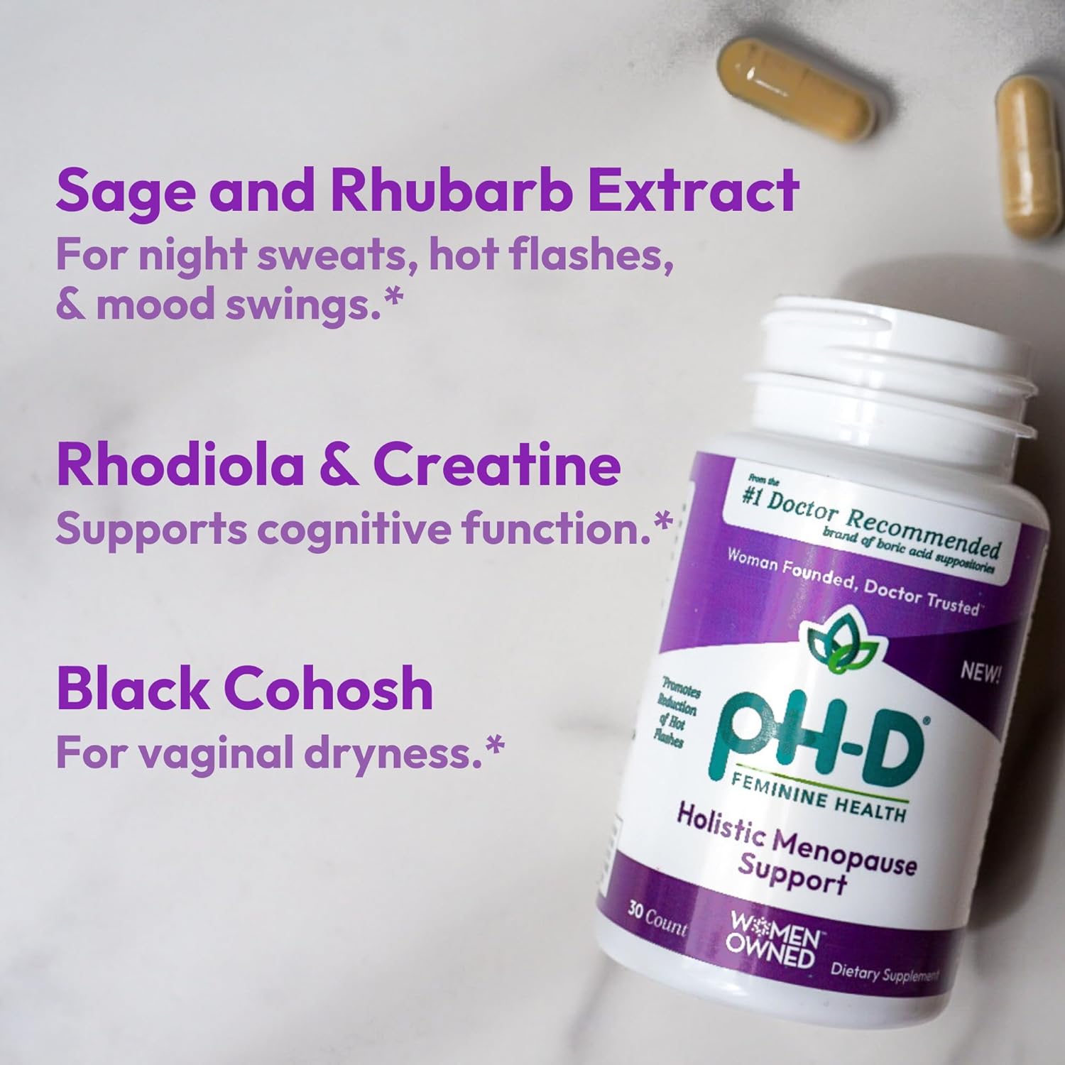 Ph-D Feminine Health - Holistic Menopause Support - Oral Supplement With Con-Cret Concentrated Creatine, Sage, Rhodiola, And Black Cohosh - 30 Count