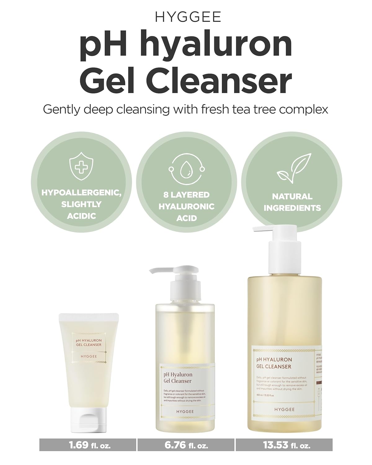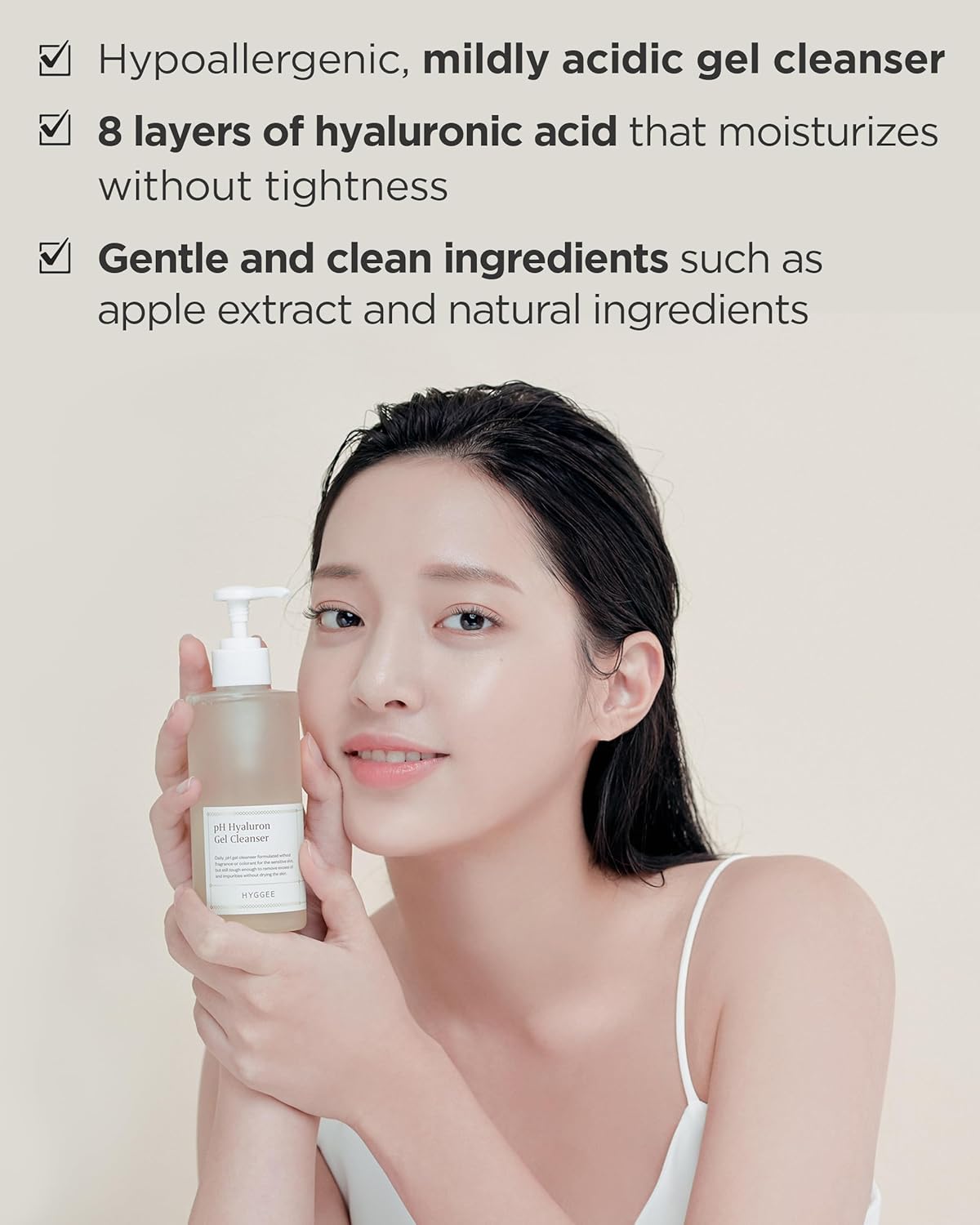 Enriched With 8-Layer Hyaluronic Acid: Hyggee Ph Hyaluron Gel Cleanser Contains 8-Layers Of Hyaluronic Acid That Moisturizes Without Tightness. This Facial Wash With Hyaluronic Acid Of Different Molecular Weights= Is Absorbed From The Inside Of The Skin To Provide Deep And Quick Moisture While Strengthening The Moisture Barrier