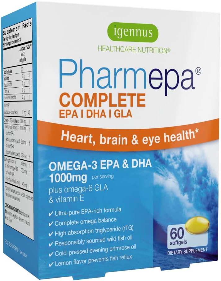 Pharmepa Complete Epa Dha Rtg Omega 3 1000Mg, High Potency Fish Oil Plus Omega 6 Gla Evening Primrose Oil, Lemon Flavor, 60 Servings