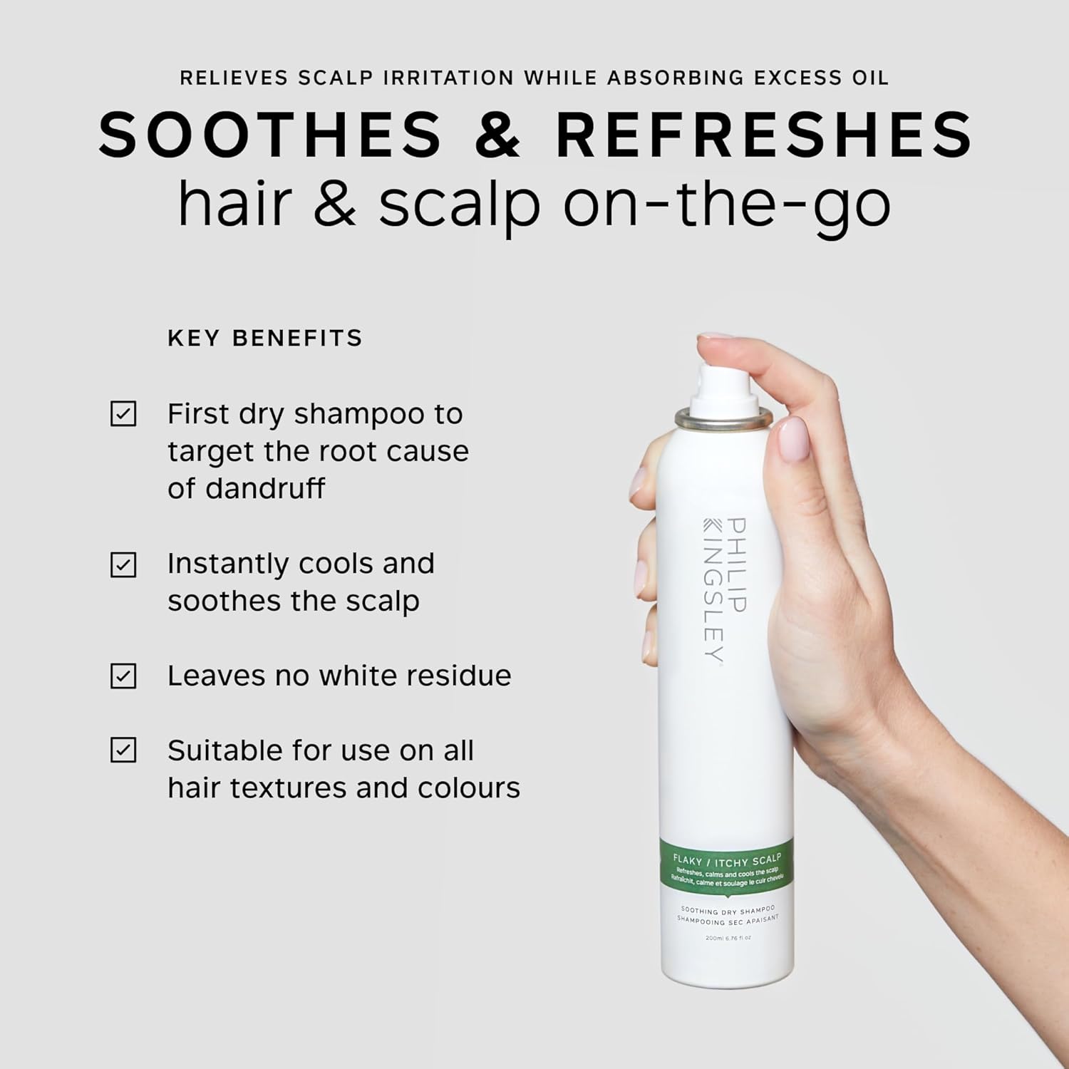 Philip Kingsley Flaky/Itchy Scalp Soothing Dry Shampoo For Flaky Oily Scalps Cleansing Scalp Care Hair Products, Refreshes, Soothes, And Cools, 6.76 Oz