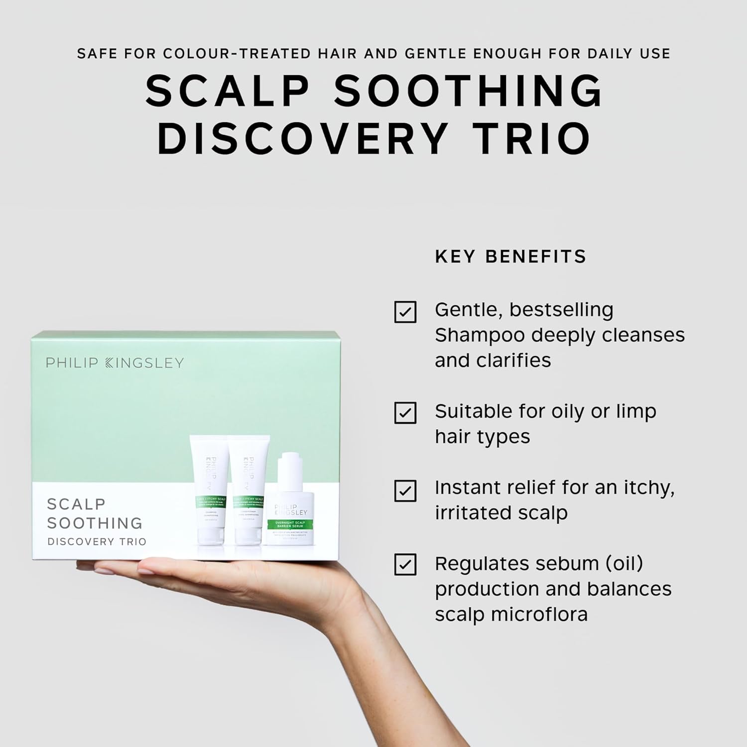 Philip Kingsley Scalp Soothing Discovery Trio - Flaky/Itchy Scalp Anti-Dandruff Shampoo And Conditioner And Overnight Scalp Barrier Serum For Women And Men, Cleansing And Nourishing Products