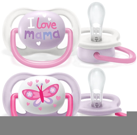 Shade:White, Purple, Pink&Material:Silicone&Age:0–6 Months Need To Soothe Your Baby, But Want To Avoid Irritating The Sensitive Skin Around The Mouth? The Philips Avent Ultra Air 0-6-Months Dummy Has Four Large Ventilation Holes To Allow Maximum Airflow, Leaving The Skin Around The Mouth Dry And Irritation-Free. Contribute To Your Baby’S Sense Of Calm With A Nice, Colourful Dummy. Characteristics: Four Large Ventilation Holes Allow The Baby’S Skin To Breathe Supports The Natural Growth Of Teeth And Gum Development, Respects The Shape Of The Palate Comfortable To Wear And Non-Irritating Thanks To The Smooth Edges Gentle On The Skin Around Your Baby’S Mouth; Leaves It Soft And Dry A Light And Comfortable Design And Soft Teat Surface Packed In A Microwave-Safe Sterilising Pouch Modern Colours And An Orthodontic Shape Ideal For Babies Aged Zero To Six Months Old Material: Silicone Bpa-Free The Pack Contains: Two Dummies How To Use: Always Choose A Dummy For Your Child In An Age-Appropriate Size. The Ultra Air Travel Pouch Also Works As A Steriliser. Add Water To The Pouch And Place It In The Microwave For A Moment. You Can Be Sure That The Dummy Is Clean And Ready For The Next Use About The Brand:Class Philips Avent When A Baby Is Born, A Mother Is Born. And For Every Mum, There'S Philips Avent, The Brand That Delivers Safe Products To Make Caring For Little Ones Easier From Birth. And Not Just For Babies And Their Mums, But For The Whole Family - Because Every Member Can Get Involved. So Philips Avent Has Another Goal - To Make Sure That The Needs Of Your Whole Family Are Perfectly Taken Care Of At Every Stage Of Motherhood. All Philips Avent Products Are Tested For Guaranteed Safety And Are Free From Harmful Chemicals. More Than 40 Years Of Experience And Millions Of Satisfied Mothers Are Simply Not Wrong. The Range Has Everything You Need To Adapt And Grow With Your Baby'S Needs. Philips Avent Knows That There Is No Guide Or Manual To Parenting. But There Is A Quality Range That Will Support You On Your Daily Journey. Choose From The Helpers That Are The Popular Philips Avent Dummies, Breast Pumps And Baby Bottles. There Are Also Practical Philips Avent Bottle Warmers And Sterilisers. Baby Monitors Are There For Maximum Safety And Convenience Whenever You Need To Keep An Eye On Your Baby. Take Every Step Of Motherhood With Confidence - Hand In Hand With Philips Avent
