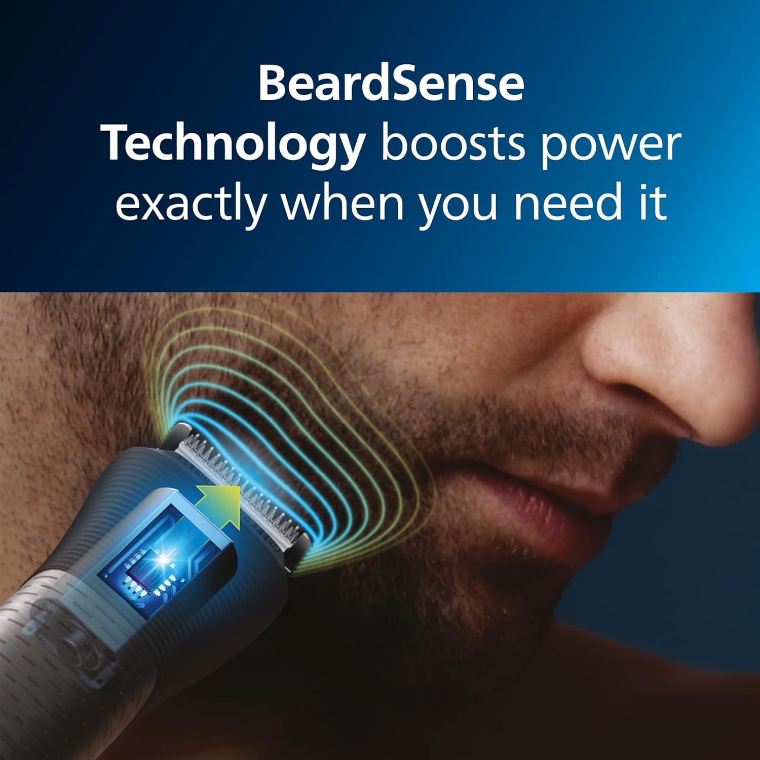 The BeardSense technology scans beard density 125x per second and boosts power exactly when you need it to easily tackle dense, bushy, or long beards