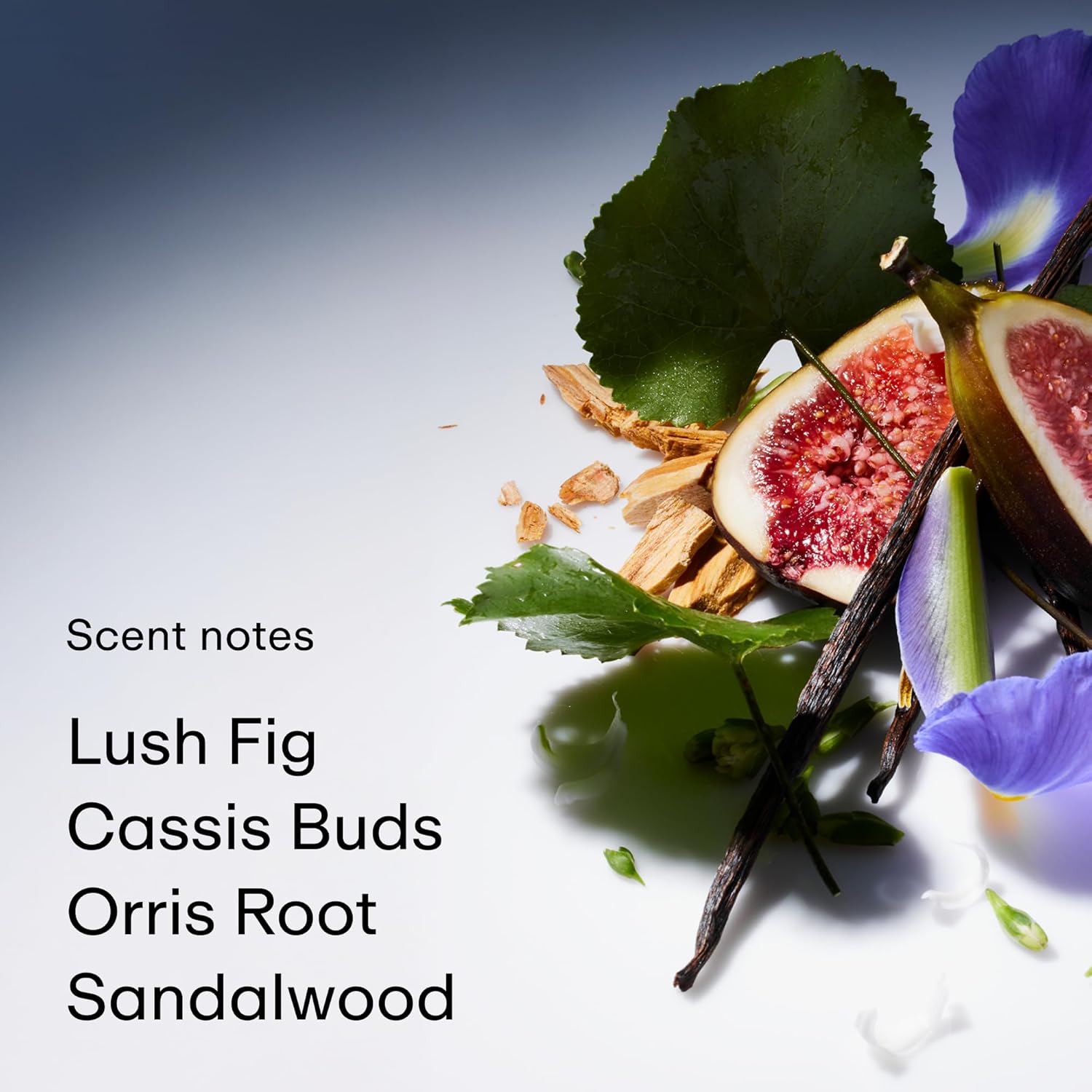 SCENT NOTES: Top: Waterlily, Lush Fig, Cassis Buds. Heart: Orris Root, Iris Flower, Jasmine Dew. Base: Skin Musks, Vanilla Madagascar, Patchouli Leaf, Sandalwood
