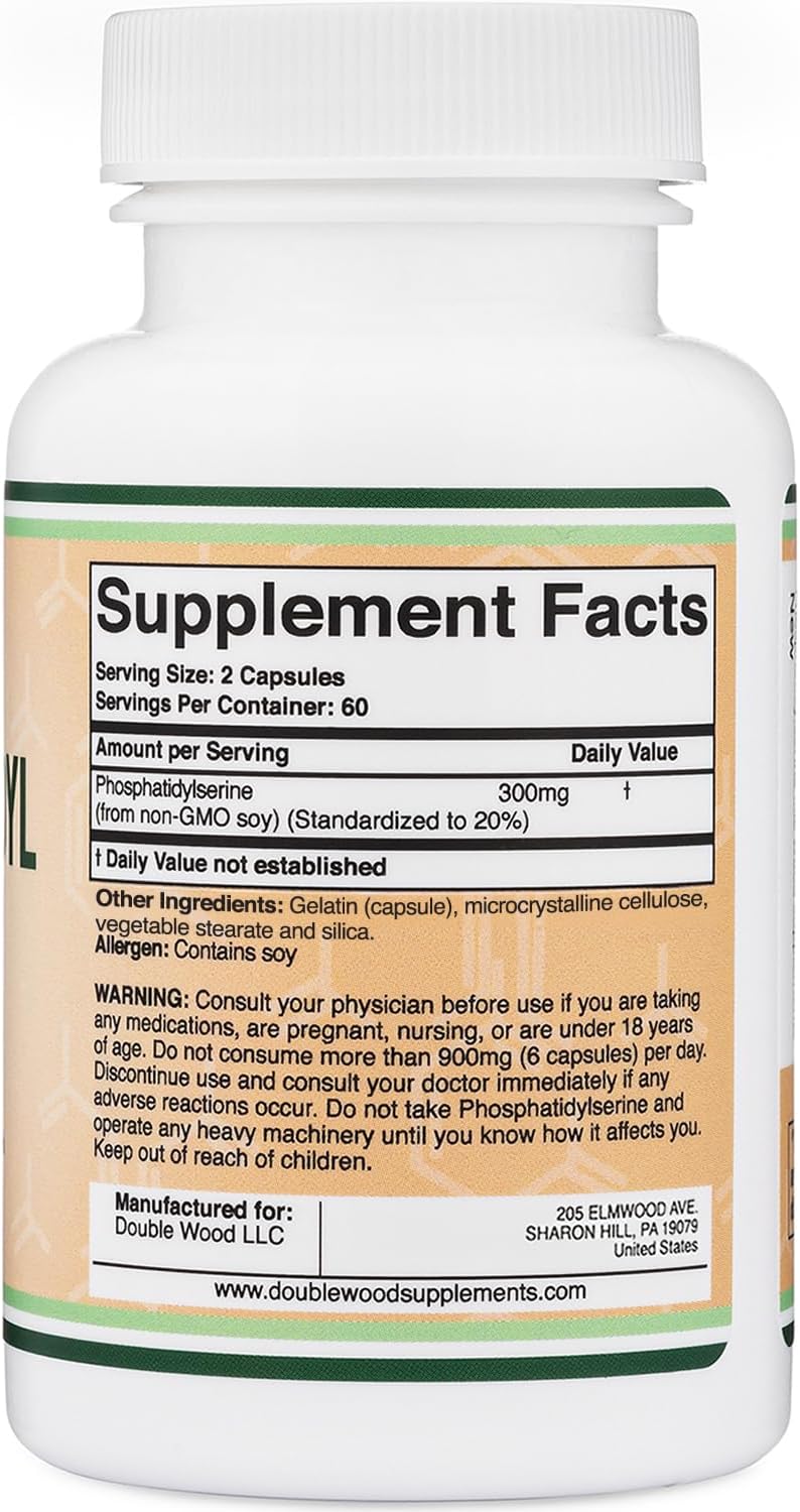 Phosphatidylserine Supplement 300Mg Per Serving, 120 Capsules (Phosphatidyl Serine Complex) By Double Wood