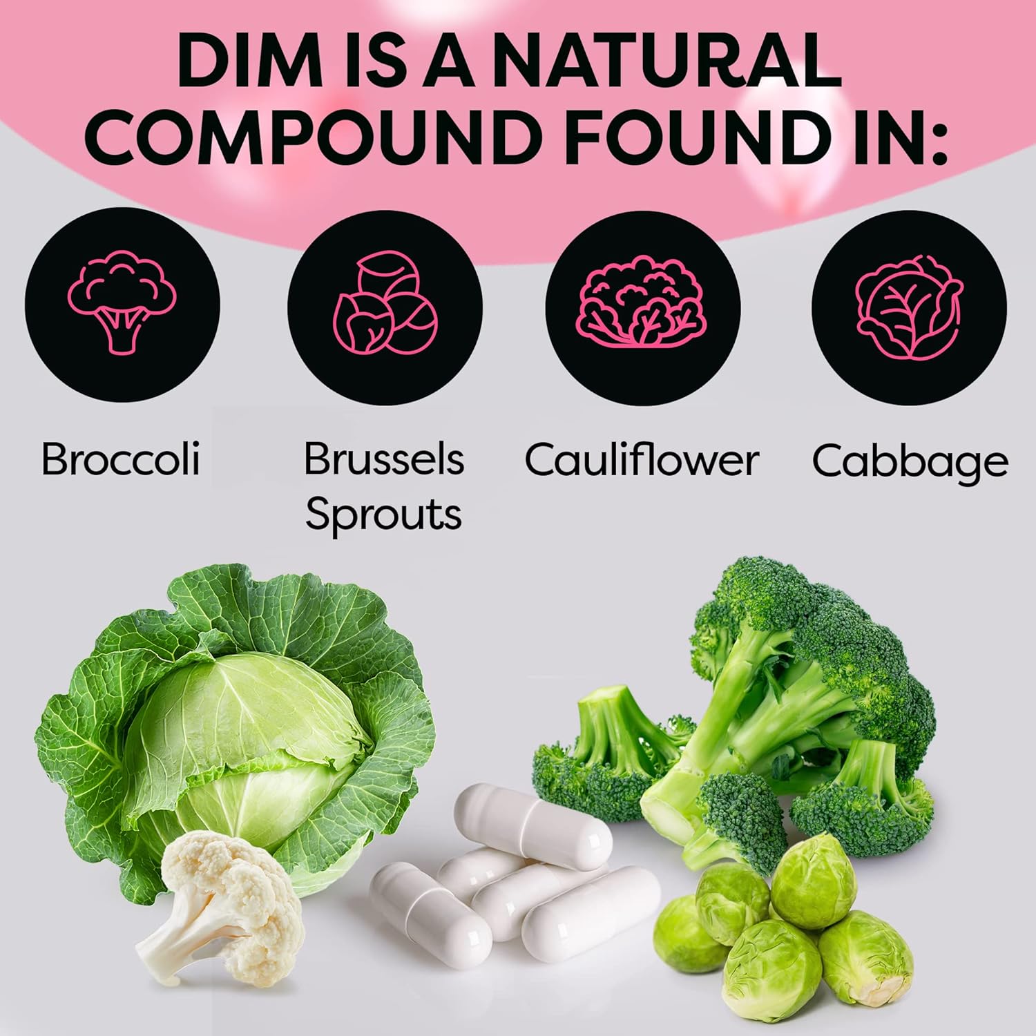 Supports Balanced Estrogen Levels - Diindolylmethane Is Found In Cruciferous Vegetables And Helps With Hormonal Balance. Dim Can Help Address Symptoms Related To Estrogen Imbalance, Such As Hormonal Acne, Weight Gain, And Mood Swings