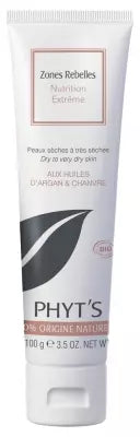 Phyt'S Rebellious Areas Extreme Nutrition Organic 100G Is A Highly Nutritious Care With Argan And Hemp Oils, Adapted To Rebel Areas (Elbows, Knees, Feet ...) And Specifically Formulated For Cracks, Crevices, Cracks And Chapping. Its Active Ingredients, Which Respond Precisely To This Intense Dryness, Reduce Feelings Of Tightness And Discomfort And Bring Suppleness And Extreme Comfort To The Most Undernourished Skins. No Dyes Or Preservatives. 100% Of The Ingredients Are Of Natural Origin. 19% Of The Ingredients Come From Organic Farming. Ecological And Organic Cosmetics Certified According To The Cosmébio Charter. Made In France