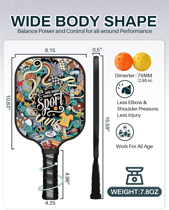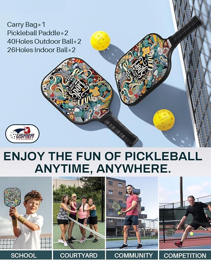 Elevate your game with this Pickleball Paddle Set, perfect for beginners, families, and recreational players. The set includes 2 high-quality racquets, 4 durable balls, protective edge guards, and a convenient storage bag, giving you everything you need for hours of fun on the court. The paddles are designed for comfortable grip, lightweight handling, and precise control, making it easier to enjoy rallies and improve skills. Ideal for indoor and outdoor play, this complete set is perfect for friends, family, or as a thoughtful gift for sports enthusiasts. Durable, portable, and ready to play, it ensures your pickleball experience is both fun and competitive.