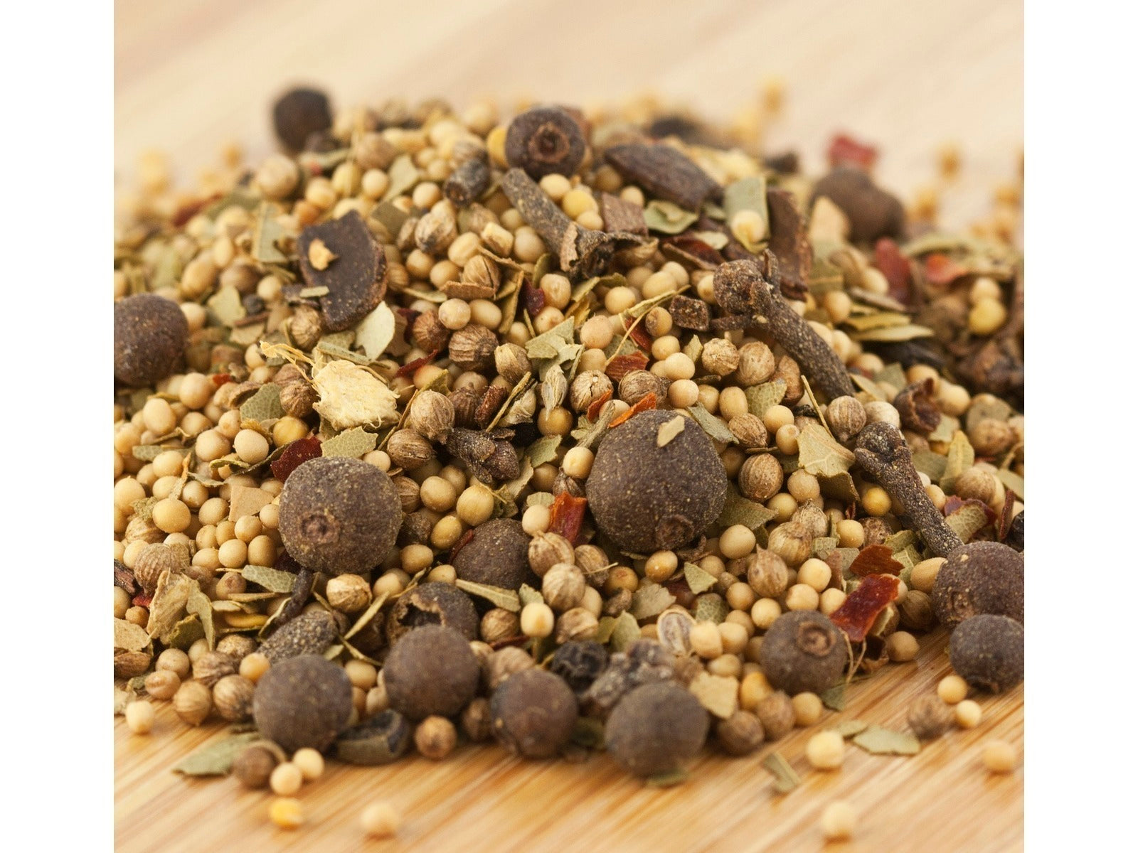 This spice blend is used in mixtures to pickle various foods, as well as to season certain dishes. Pickling spice is added to the start of the pickling process to add flavor. Mustard seed is included, as well as a variety of other whole and cut and sifted seeds and spices. Around 21 oz, this is a little more than 1 cup of spice. Compare to national brands! 2-3 times more* than national brands! This spice is a blend of whole, cut, and sifted seeds and spices. Pickling spice is used at the start of the pickling process to add flavor. This spice blend contains a variety of spices for a nice blend of favors