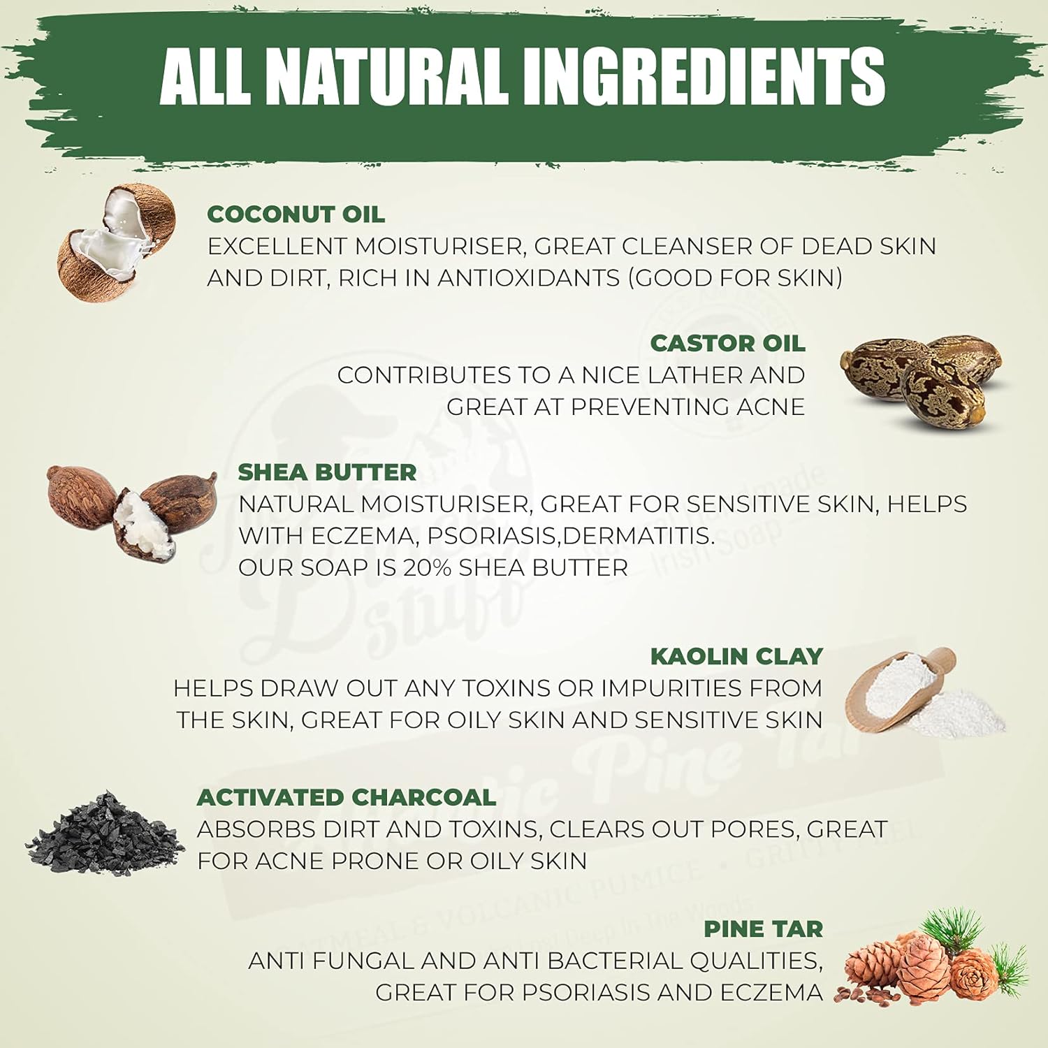 Pine Tar Soap - Mens Bar Soap Made With Pine Tar, Organic Ingredients And Essential Oils - Handmade Cold Process Body Soap For Men - Moisturizing And Cleansing Organic Bath Soaps