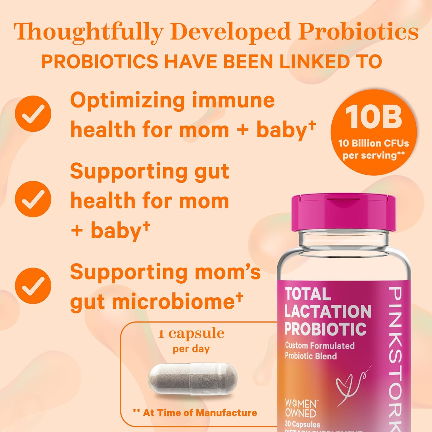 Breastfeeding support: Includes 3 products to support your breastfeeding goals, lactation, immune health, and breast milk supply, taste, and flow. All products can be taken together for best use! Take 1 small capsule per day, 30 vegetarian capsules total, 30-day supply. Each tea sachet makes 2 cups, 30 cups total. For the Lactation Sweets, take 1-4 sweets per dayKey benefits: Probiotic benefits are passed on through breast milk and provide digestive support support for babies. Supports breast milk production, nutrition, flow, and taste with herbal galactagogues (herbs that help with natural lactation)Clean: Made without gluten, wheat, dairy, soy, GMOs, and more. Third-party testedAll the essentials: Includes 10 billion CFUs per serving of Probiotic strains, plus Fennel, Anise, Marshmallow Root, Fenugreek, and Milk Thistle, to support lactation for nursing mothersWomen-owned + run: Our founder and CEO is a woman, and over 80% of our employees are women. We are on a mission to provide women with hope and positively impact everyone that comes in contact with Pink Stork