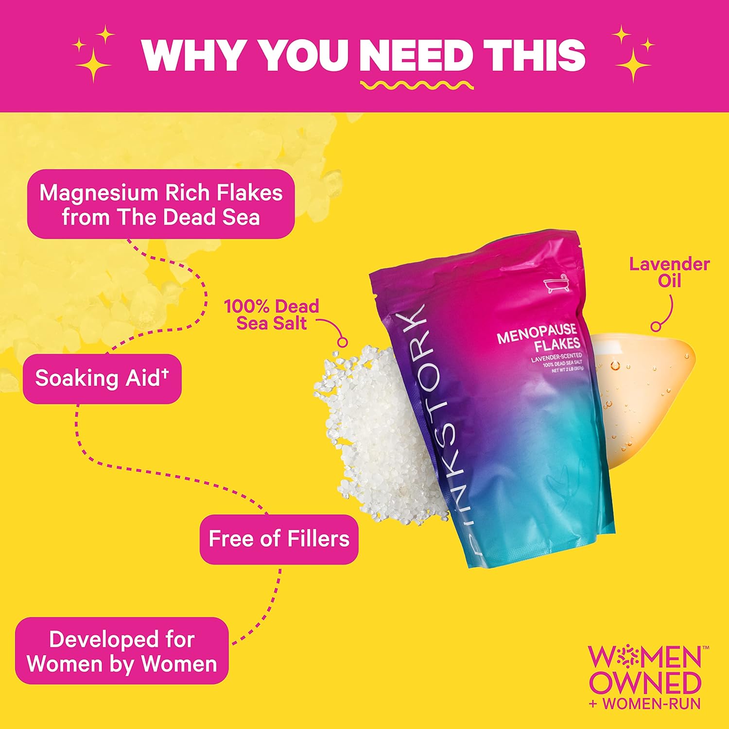Pink Stork Menopause Flakes: Relaxing Lavender Scented Bath Salts For Women, Pure Magnesium From The Dead Sea, Supports Hormone Balance, Women-Owned, 2 Lbs