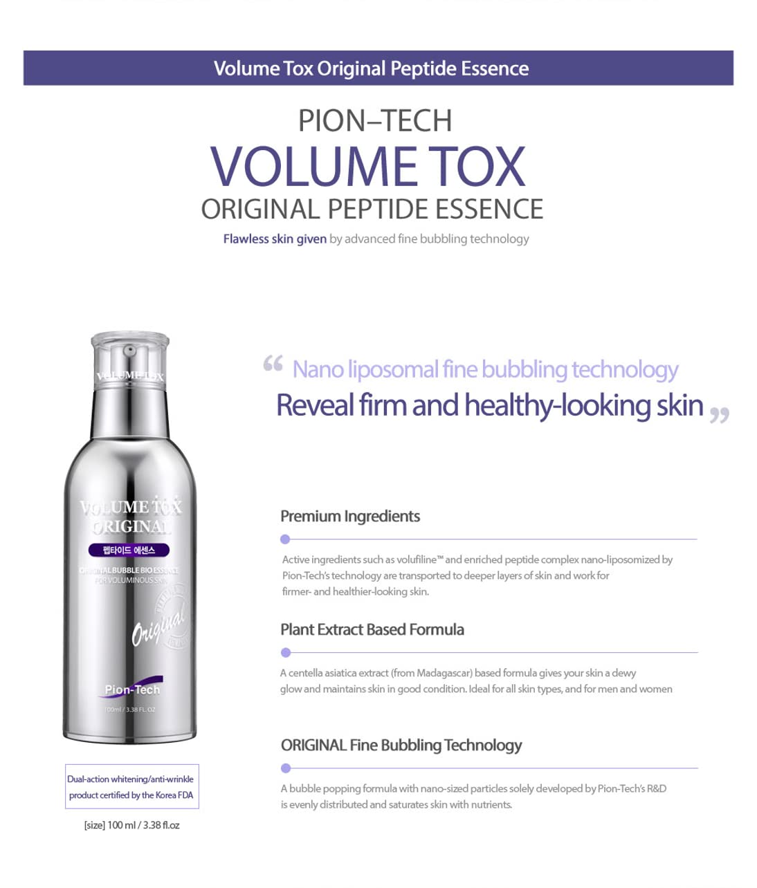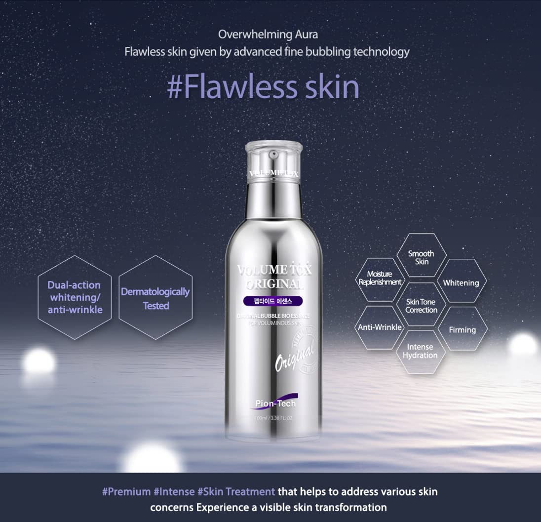 Pion-Tech Korean Skin Care Facial Essence - Bubble Moisturizer Volume Tox Original Peptide Hydrating Serum with Anti Wrinkle Collagen Formula and Centella 3.38 .