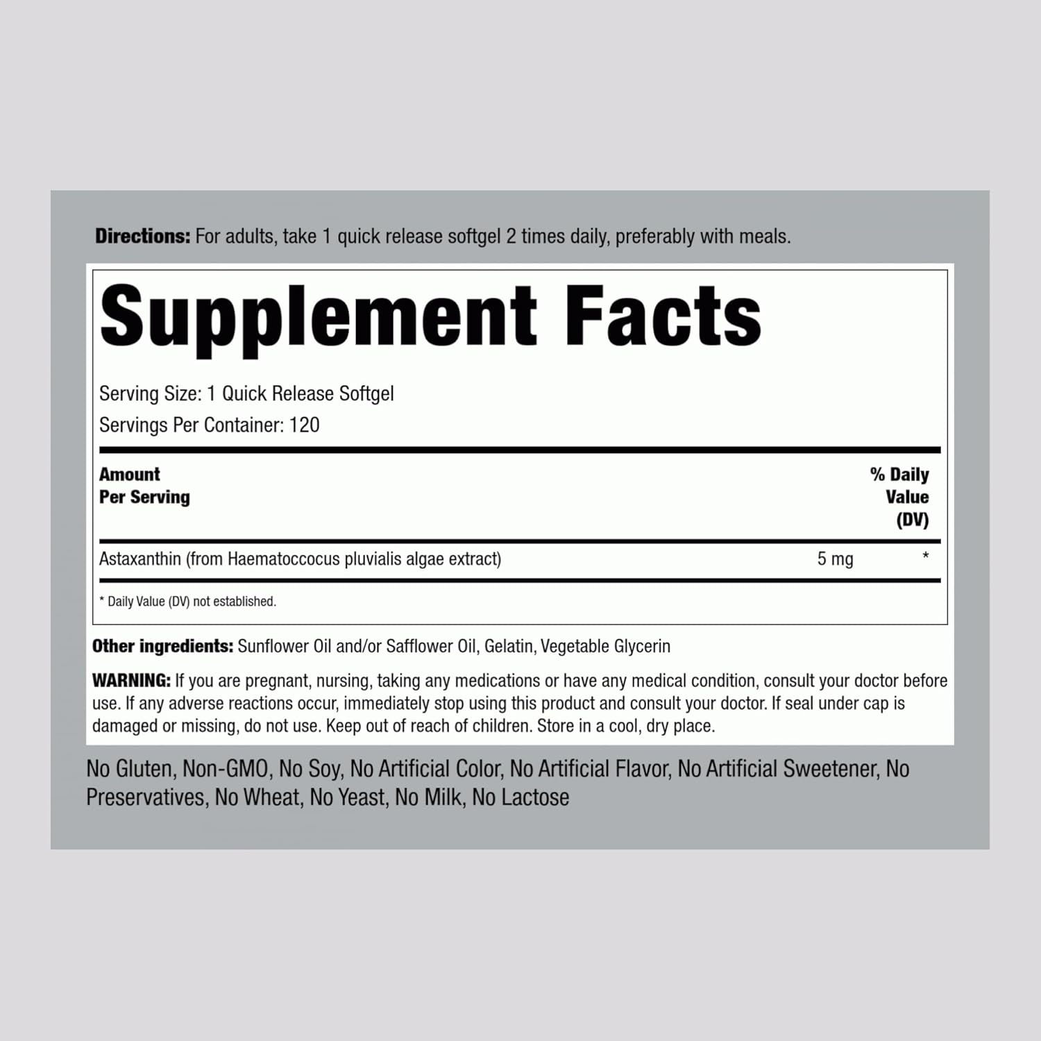 Piping Rock Astaxanthin Supplements 5Mg | 120 Softgels | Non-Gmo, Gluten Free