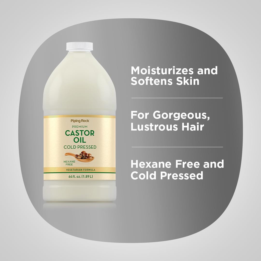 Piping Rock Castor Oil 64 oz | For Hair, Skin, Face, and Eyelashes | Cold Pressed & Hexane Free | Premium Vegetarian Formula | Gluten Free, Non-GMO