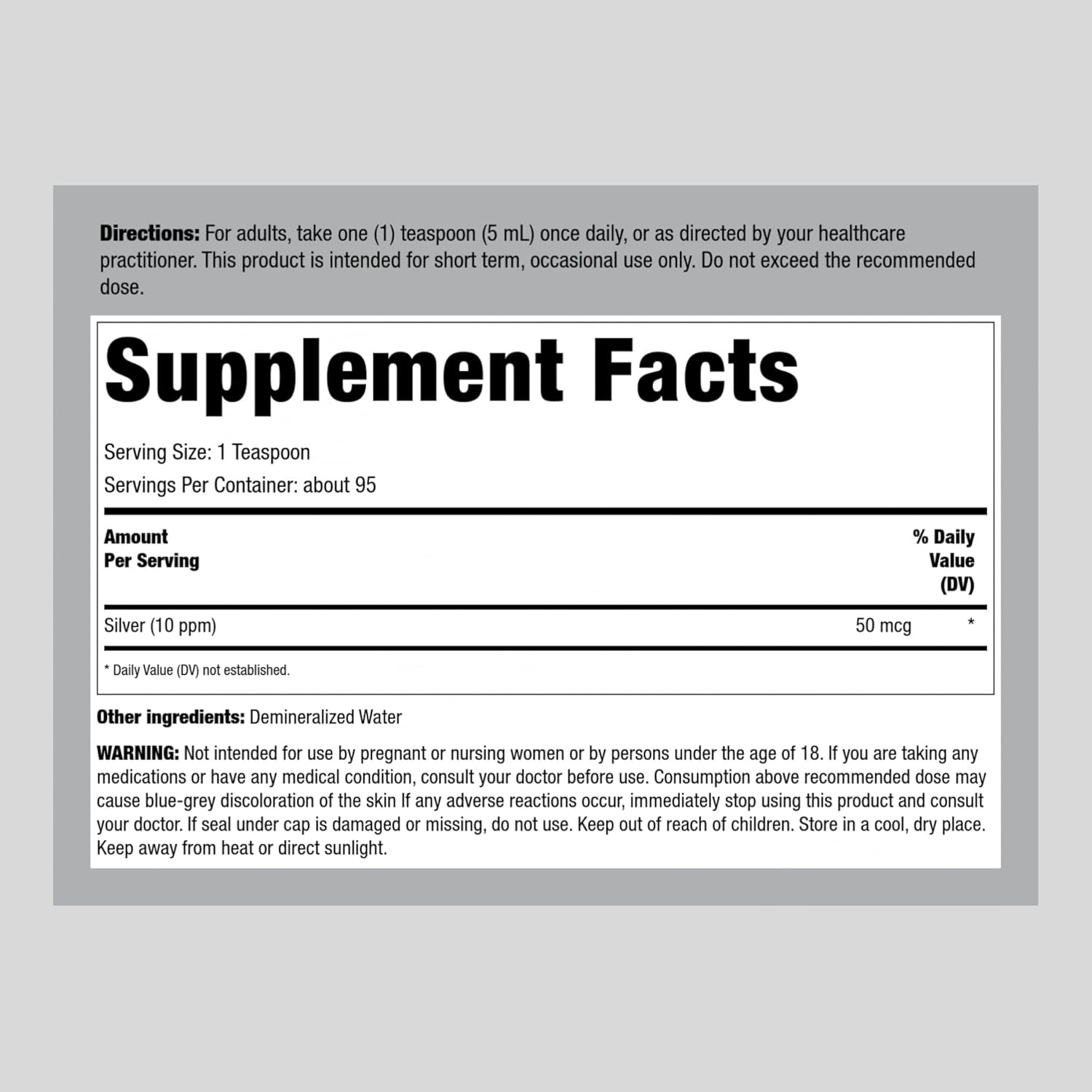 Silver is a naturally occurring element that has been used in ancient wellness practices for centuries. Colloidal Silver is a liquid solution of tiny silver particles that are commonly found in topical products as well as dietary supplements. Our Colloidal Silver features 10 PPM of Silver (50 mcg) per serving in a convenient liquid form. Using Nano Silver Technology, this premium grade formula is also vegetarian friendly, non-GMO, and free of gluten, wheat, yeast, milk, lactose, soy and preservatives. Piping Rock's Promise Piping Rock proudly offers an ever-growing selection of products designed to help you achieve your unique wellness goals. We verify all products with third-party, FDA-registered agencies ensuring purity, potency, safety, and innovation in everything we do. We’re committed to supporting you in your journey to healthy living, and we thank you for choosing us!