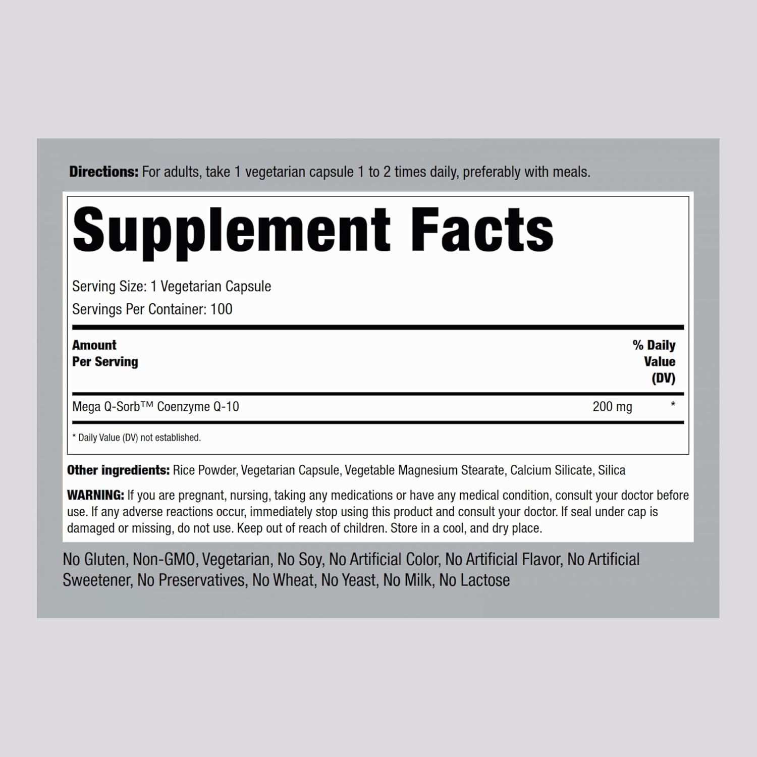 Piping Rock Coq10 200 Mg | 100 Capsules | Mega Q Sorb | Vegetarian, Non-Gmo, Gluten Free Supplement