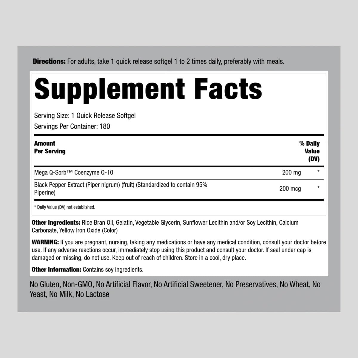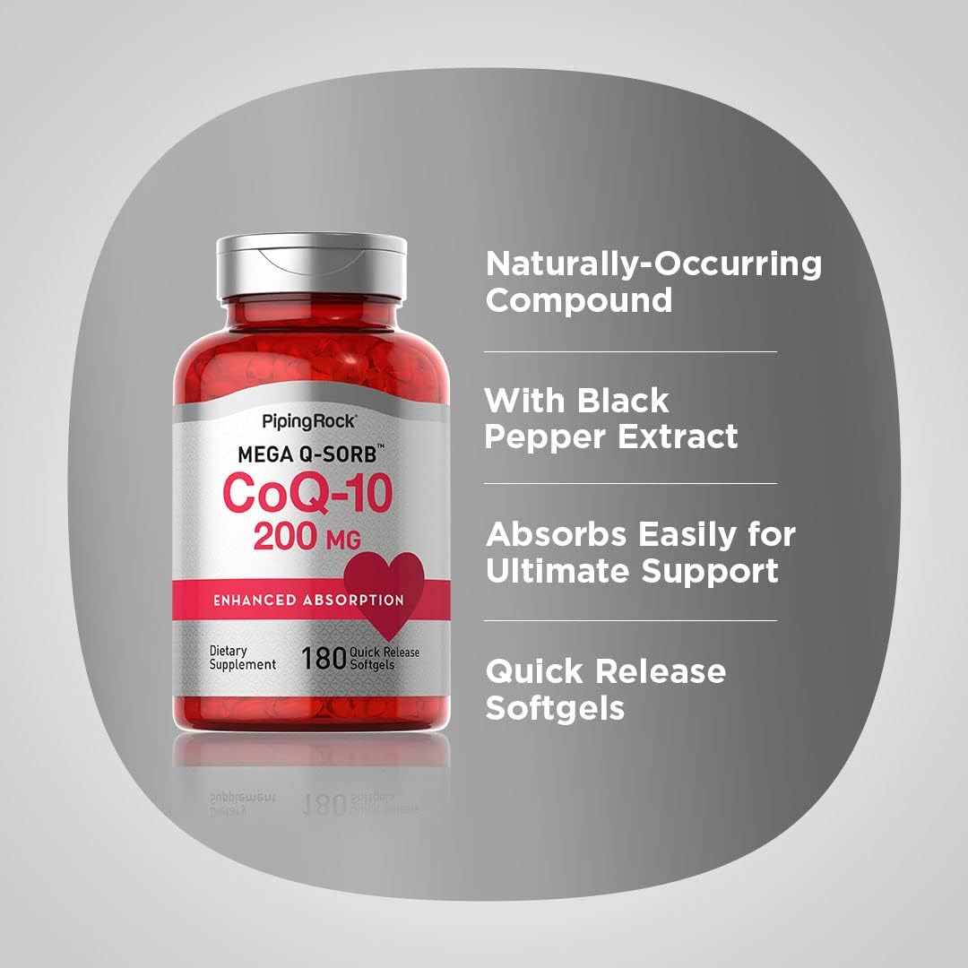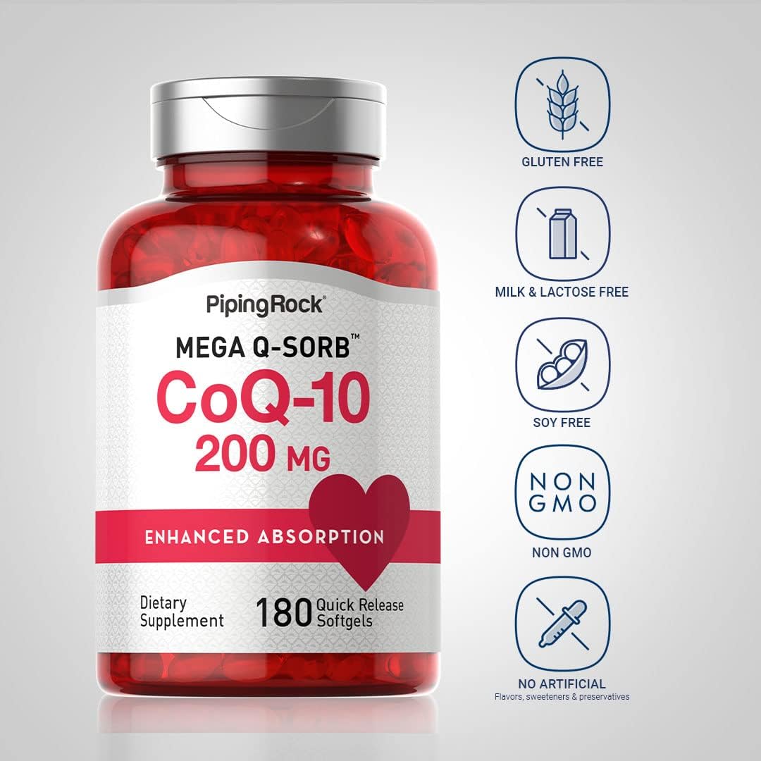 Piping Rock Coq10 200Mg | 180 Softgels | Enhanced Absorption | Non-Gmo, Gluten Free Supplement