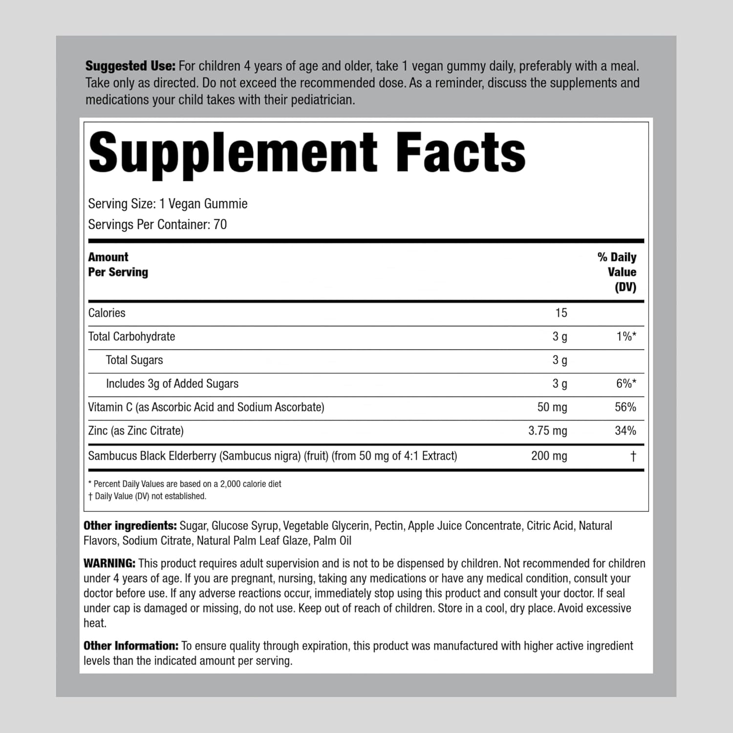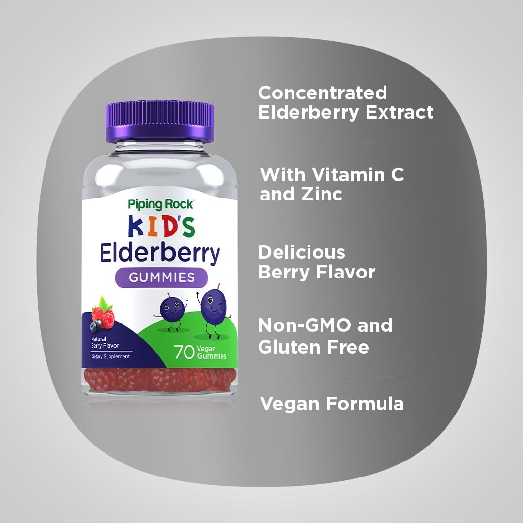 Piping Rock Kids Elderberry Gummy Vitamins | 70 Gummies | With Zinc And Vitamin C | Vegan Formula | Berry Flavor | Non-Gmo, Gluten Free Supplement