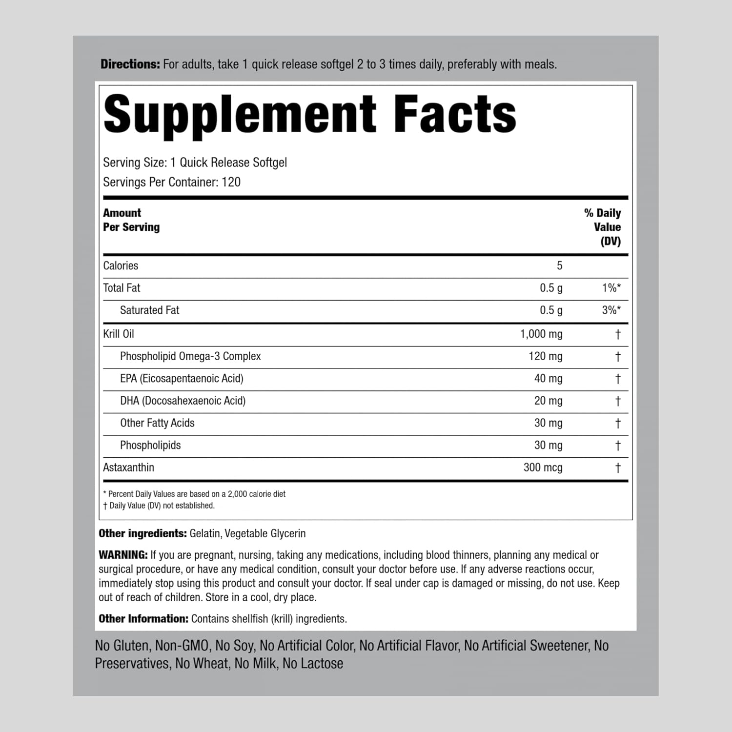 Piping Rock Krill Oil 1000mg Softgels | 120 Count | Omega 3, EPA DHA Supplement | with Astaxanthin | Maximum Strength |Non-GMO, Gluten Free