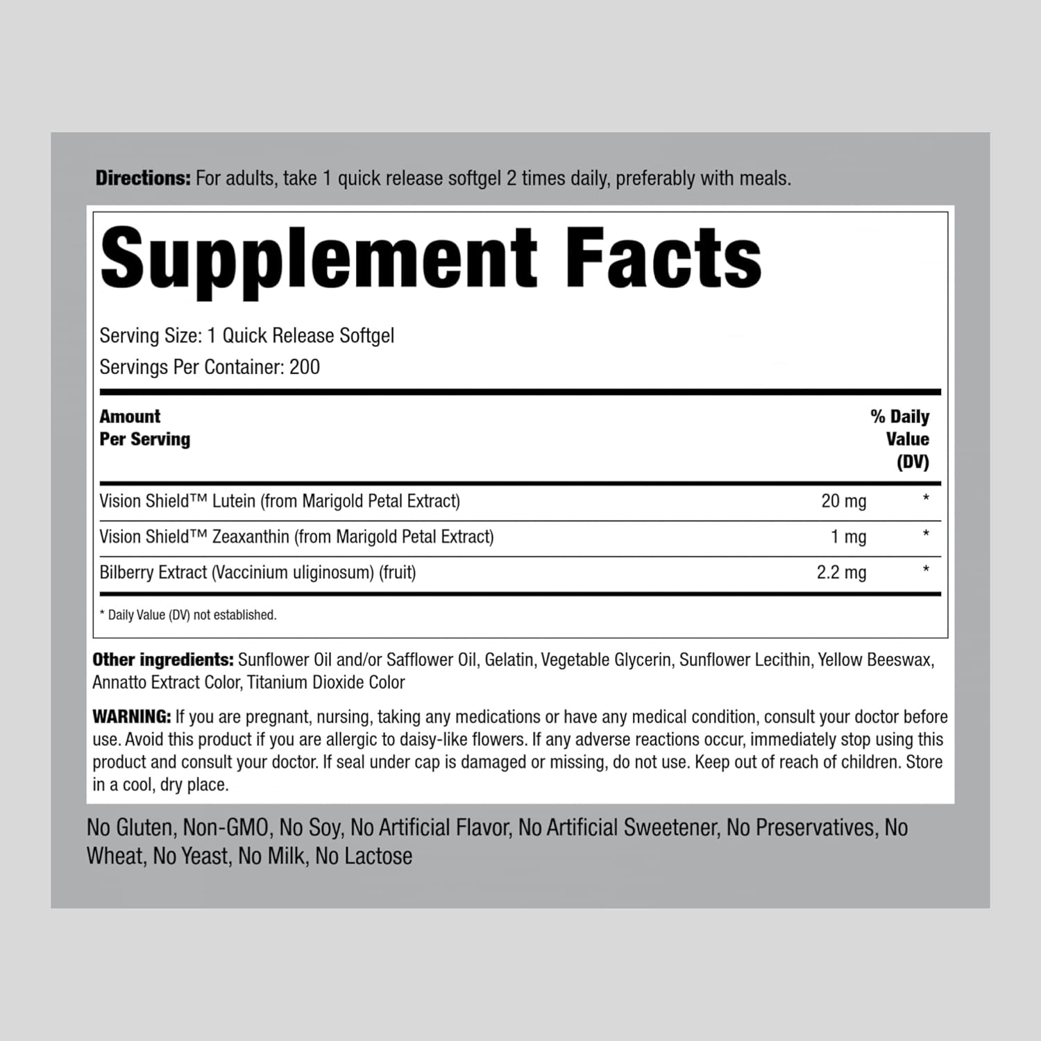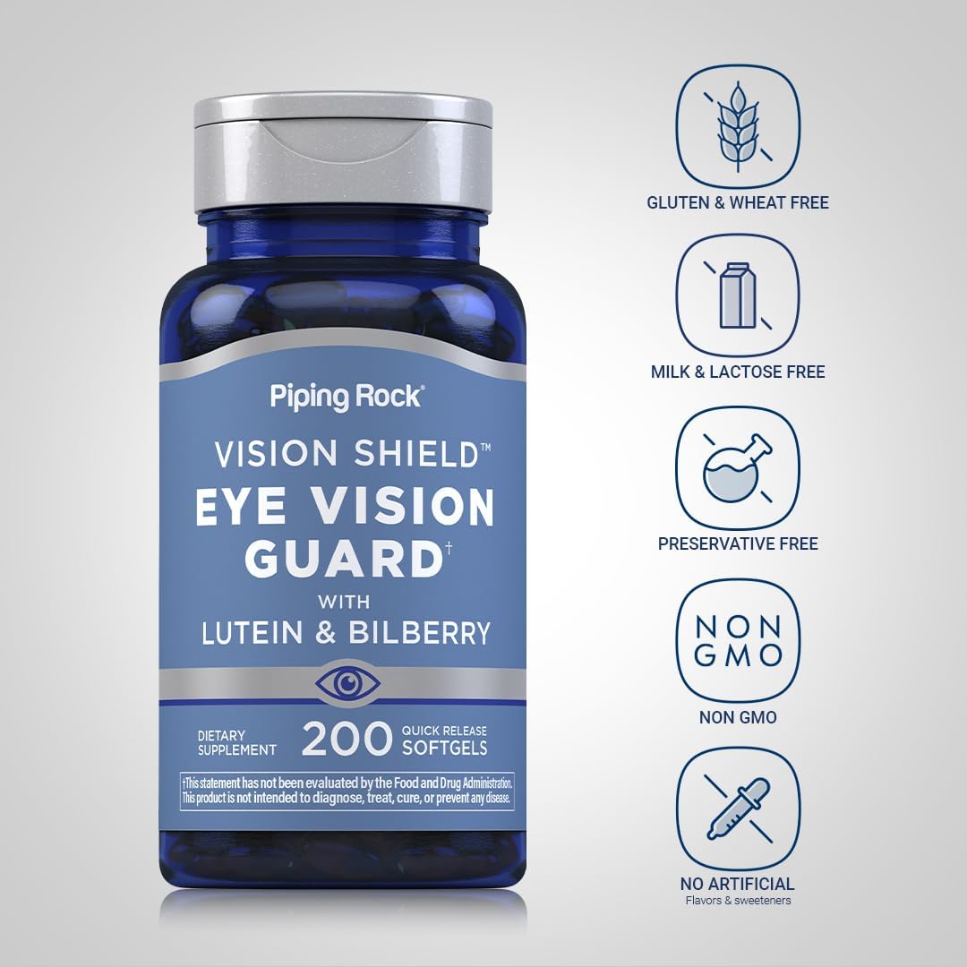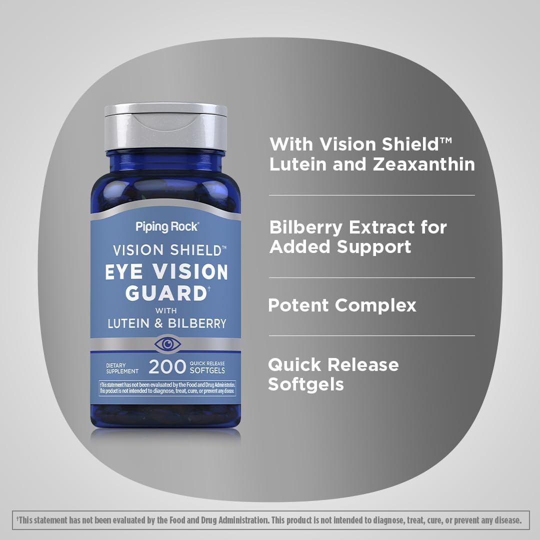 Piping Rock Lutein And Zeaxanthin Supplements | 200 Softgels | With Bilberry | Eye Vision Vitamins Complex | Non-Gmo, Gluten Free