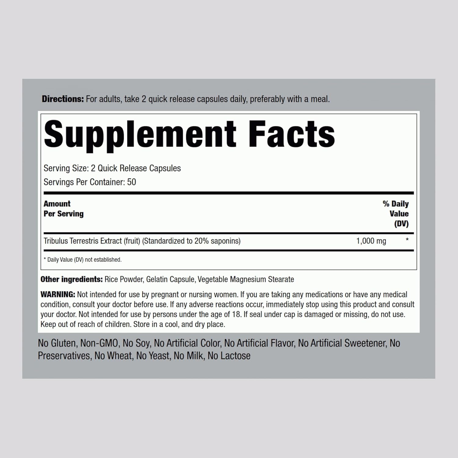 Piping Rock Tribulus Terrestris For Men 1000Mg | 100 Capsules | Mega Standardized Extract | Non-Gmo, Gluten Free Supplement