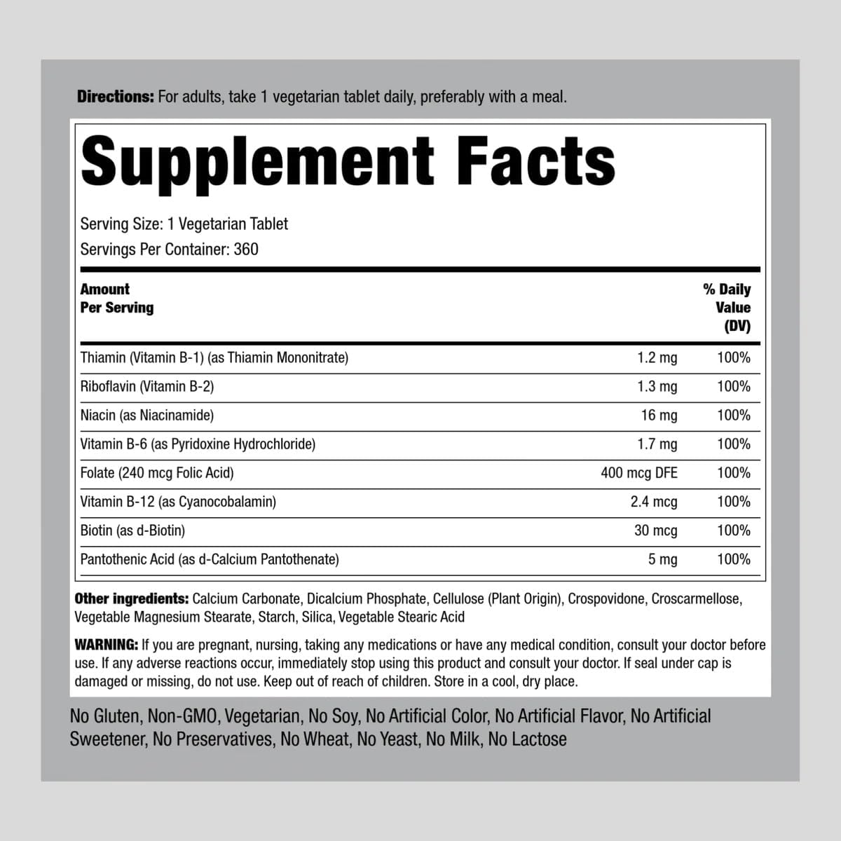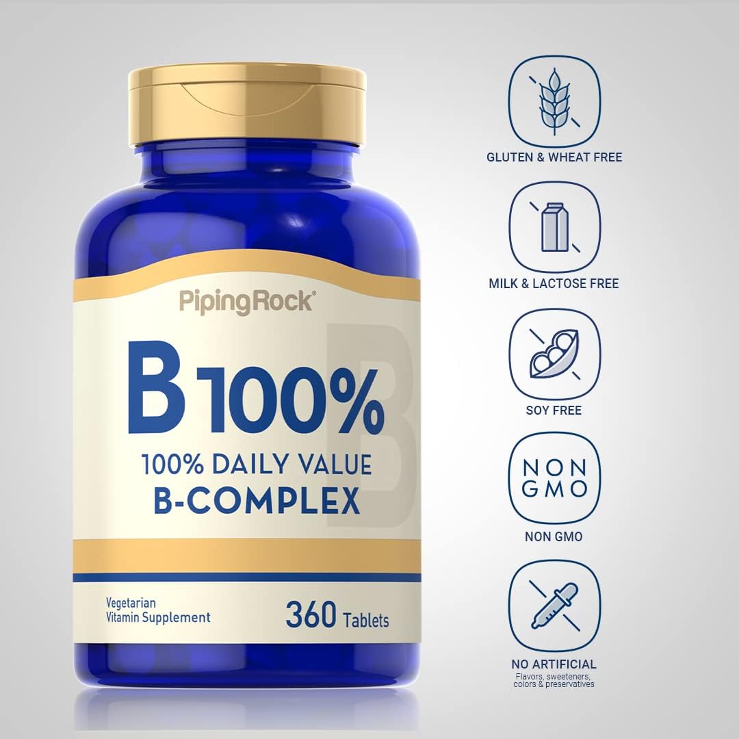 Piping Rock Vitamin B Complex | 360 Tablets | Vegetarian, Non-Gmo, Gluten Free Supplement