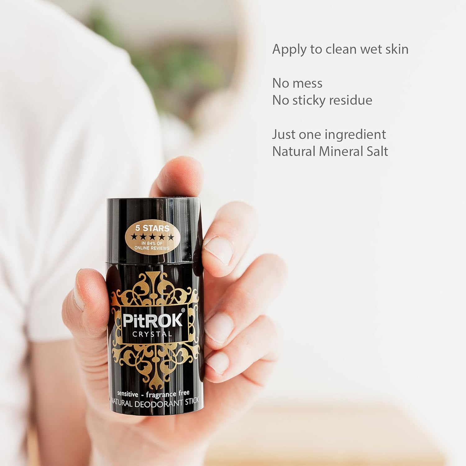 Pitrok Original Crystal Natural Deodorant Stick 1X100G. Refillable 'Push-Up' Format. Vegan, Cruelty Free, Fragrance Free. Sensitive Skin