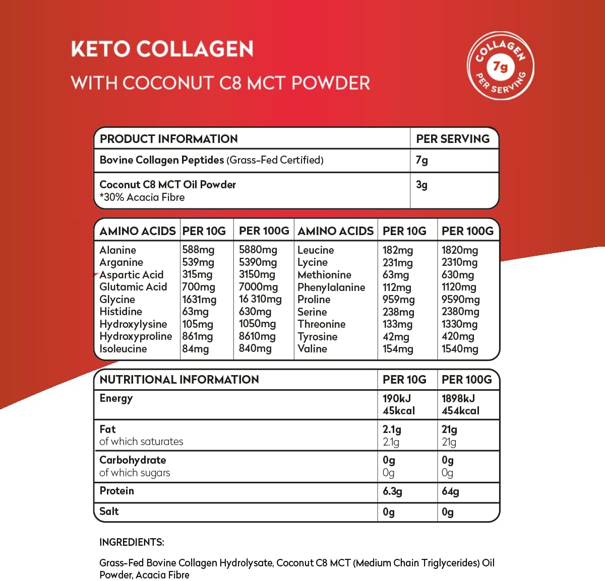 Planet Paleo Keto Collagen Powder (220G, 22 Servings) - Grass-Fed, High Protein, With Mct Powder - Low Carb, Creamer, Non-Gmo, Halal - Fitness Recovery, Ketogenic Boost
